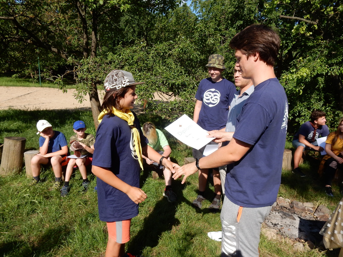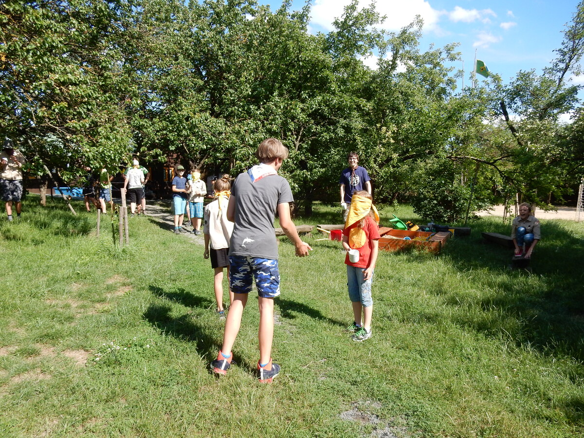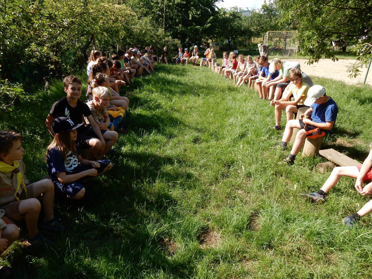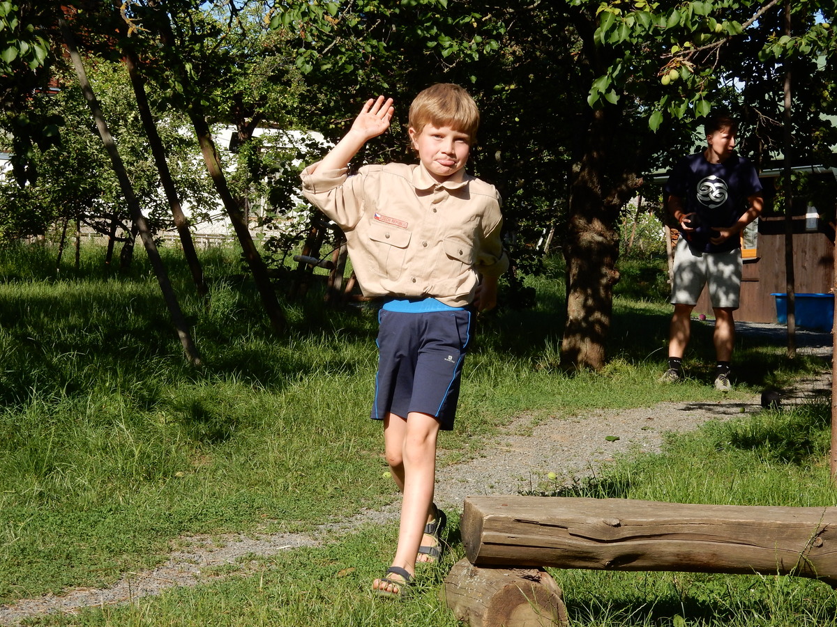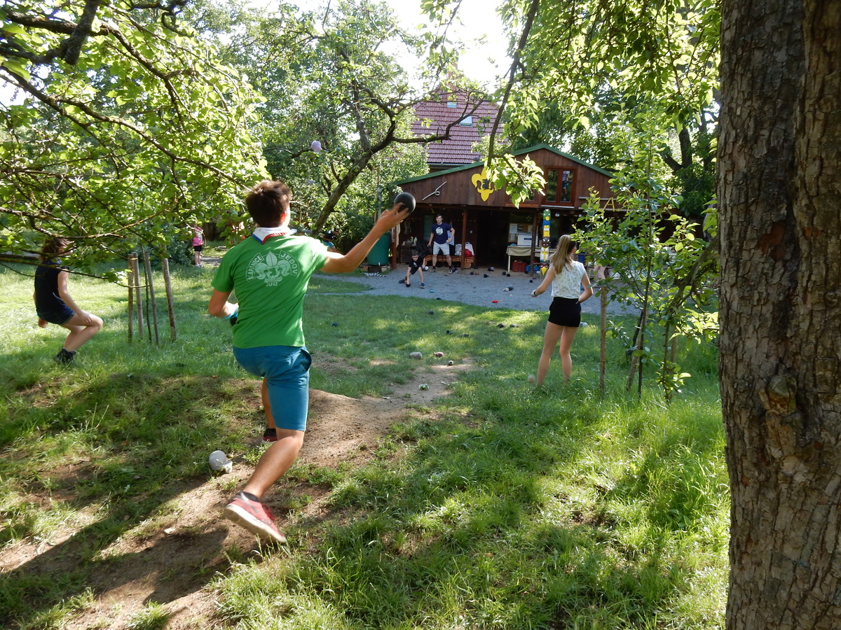 Je pátek 21.6.2019, 15:45, první letní den. Teploty atakují 30°C, svítí sluníčko a na Boudě se začínají scházet první členové oddílu. Sešlo se 48 dětí a 17 vedoucích.Po nástupu se děcka rozdělily na 2 poloviny a vysvětlily se pravidla hry Letadlo v mlze. Jde o hru, kde se v každém týmu děti rozdělí do dvojic, střelec se zavázanýma očima a navigátor. Po rozeznění píšťalky letí letadla do boje… Voda lítala vzduchem jako upřené pohledy střelců. Po dohrání se všichni sešli na špalcích a začalo vyhodnocování bodování a účasti. Jmen bylo řečeno během 10 minut opravdu hodně… Děti odcházely s odměnami jako jsou třeba plyšáci, čelovky, hrníčky, atd. Následovalo vyhodnocení otázek ze soutěže Vyznáte se?. Po vyhodnocení hned následovala tradiční bojovka s hadrovými koulemi. Stejné týmy, avšak s posilama z řad vedoucích. Bitva to byla neskutečná, koule lítaly vzduchem jedna za druhou. Zvednuté ruce a smutné odcházení na špalek… Po 3 kolech se rozhodlo vítězstvím 2:1 pro zelený. Teď už není moc o čem psát protože proběhl závěrečný nástup a šlo se domů. Tak se snad všichni zase brzo potkáme na táboře! Roxy
