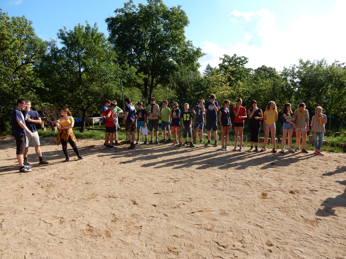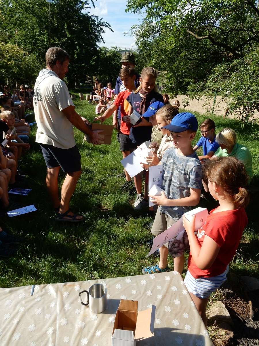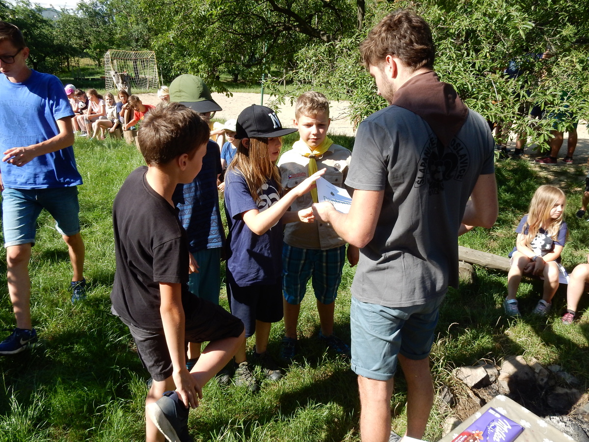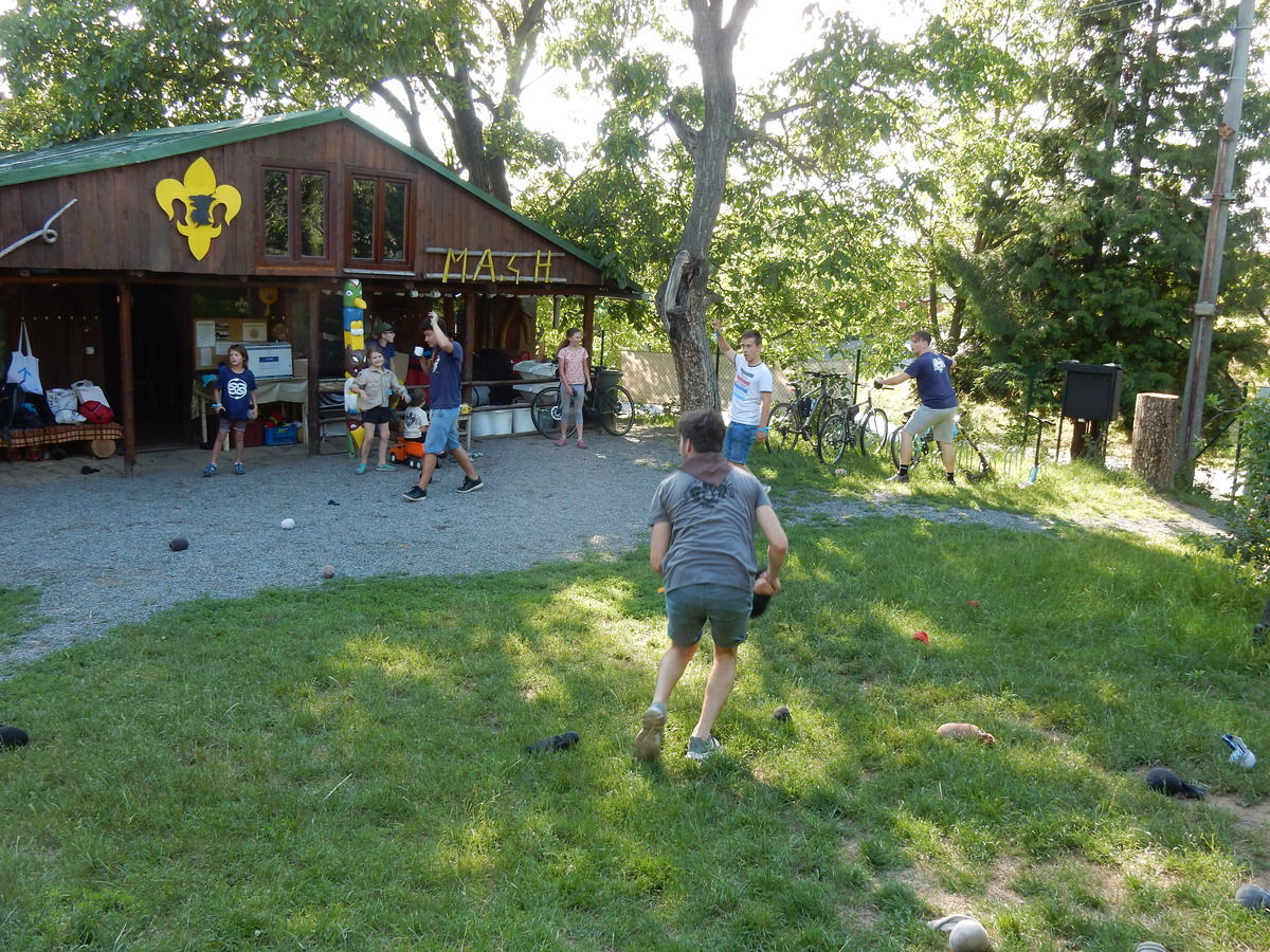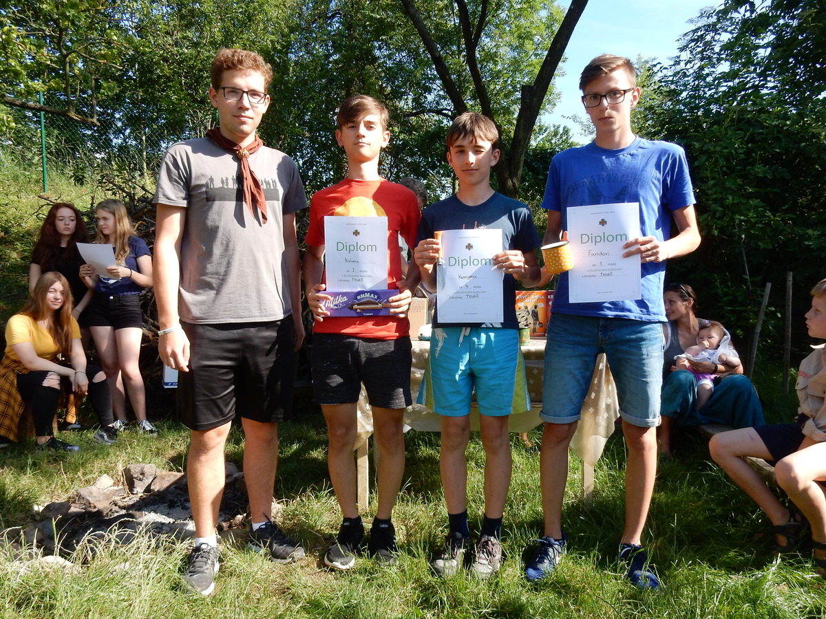 Je pátek 21.6.2019, 15:45, první letní den. Teploty atakují 30°C, svítí sluníčko a na Boudě se začínají scházet první členové oddílu. Sešlo se 48 dětí a 17 vedoucích.Po nástupu se děcka rozdělily na 2 poloviny a vysvětlily se pravidla hry Letadlo v mlze. Jde o hru, kde se v každém týmu děti rozdělí do dvojic, střelec se zavázanýma očima a navigátor. Po rozeznění píšťalky letí letadla do boje… Voda lítala vzduchem jako upřené pohledy střelců. Po dohrání se všichni sešli na špalcích a začalo vyhodnocování bodování a účasti. Jmen bylo řečeno během 10 minut opravdu hodně… Děti odcházely s odměnami jako jsou třeba plyšáci, čelovky, hrníčky, atd. Následovalo vyhodnocení otázek ze soutěže Vyznáte se?. Po vyhodnocení hned následovala tradiční bojovka s hadrovými koulemi. Stejné týmy, avšak s posilama z řad vedoucích. Bitva to byla neskutečná, koule lítaly vzduchem jedna za druhou. Zvednuté ruce a smutné odcházení na špalek… Po 3 kolech se rozhodlo vítězstvím 2:1 pro zelený. Teď už není moc o čem psát protože proběhl závěrečný nástup a šlo se domů. Tak se snad všichni zase brzo potkáme na táboře! Roxy