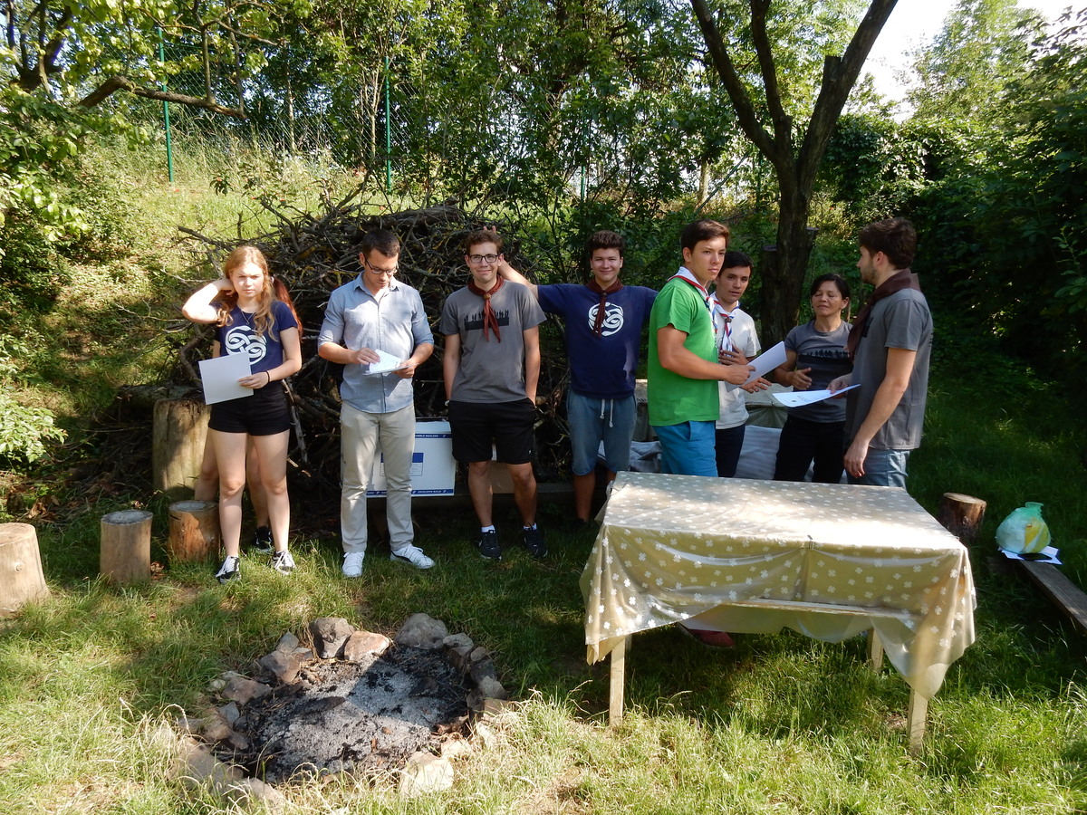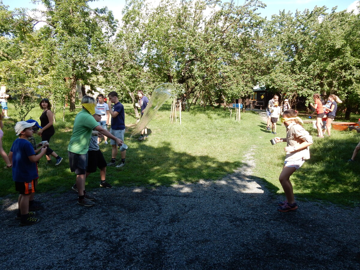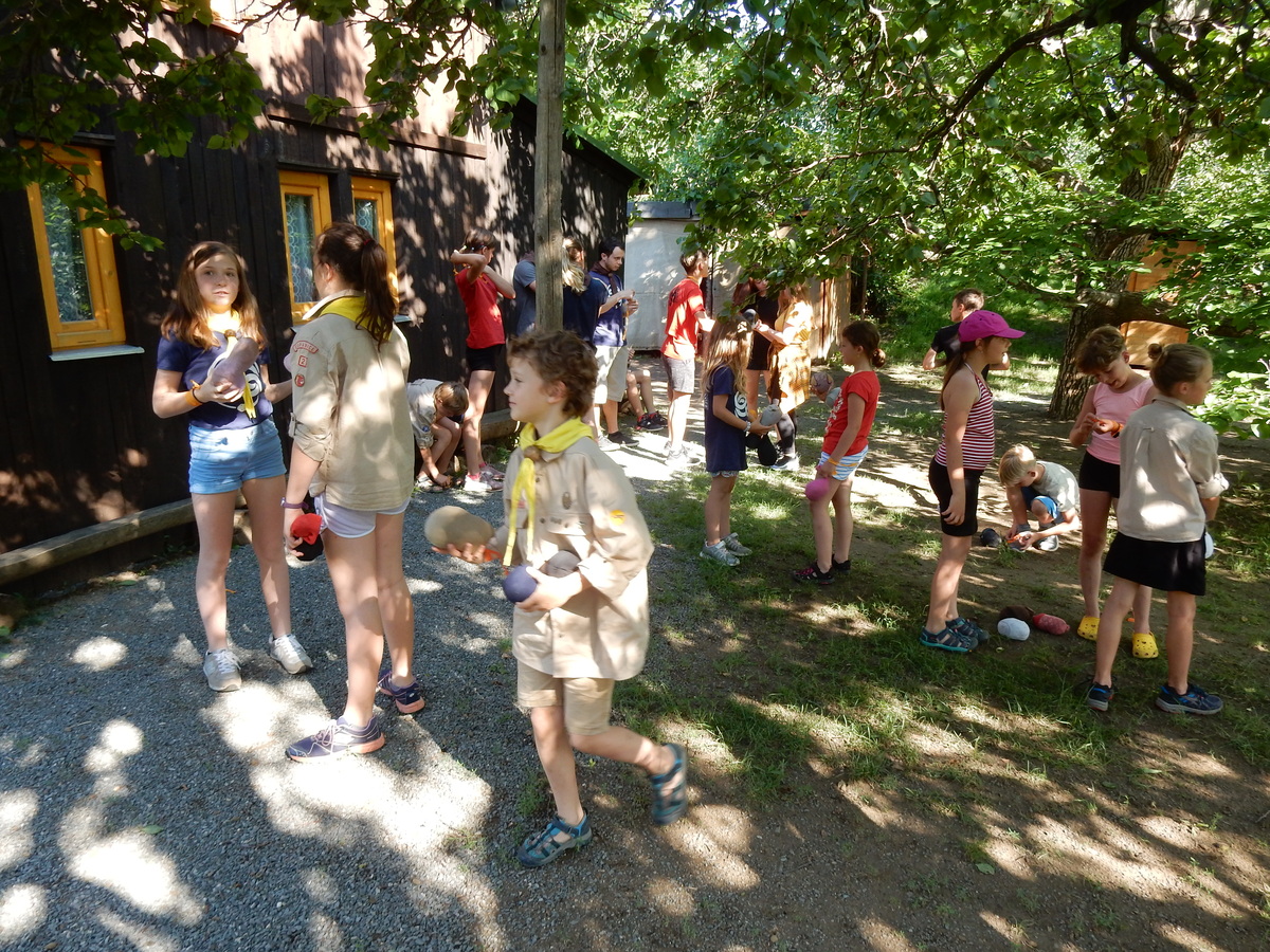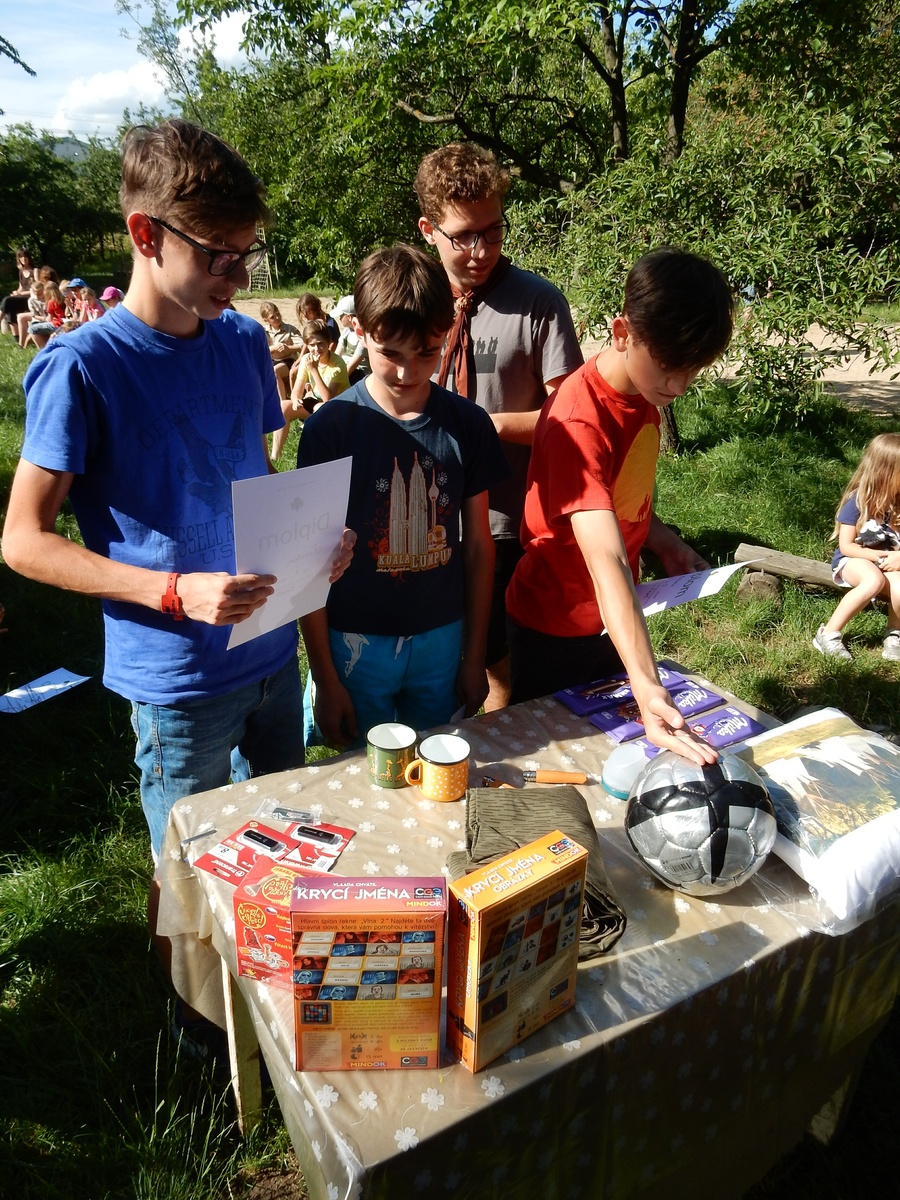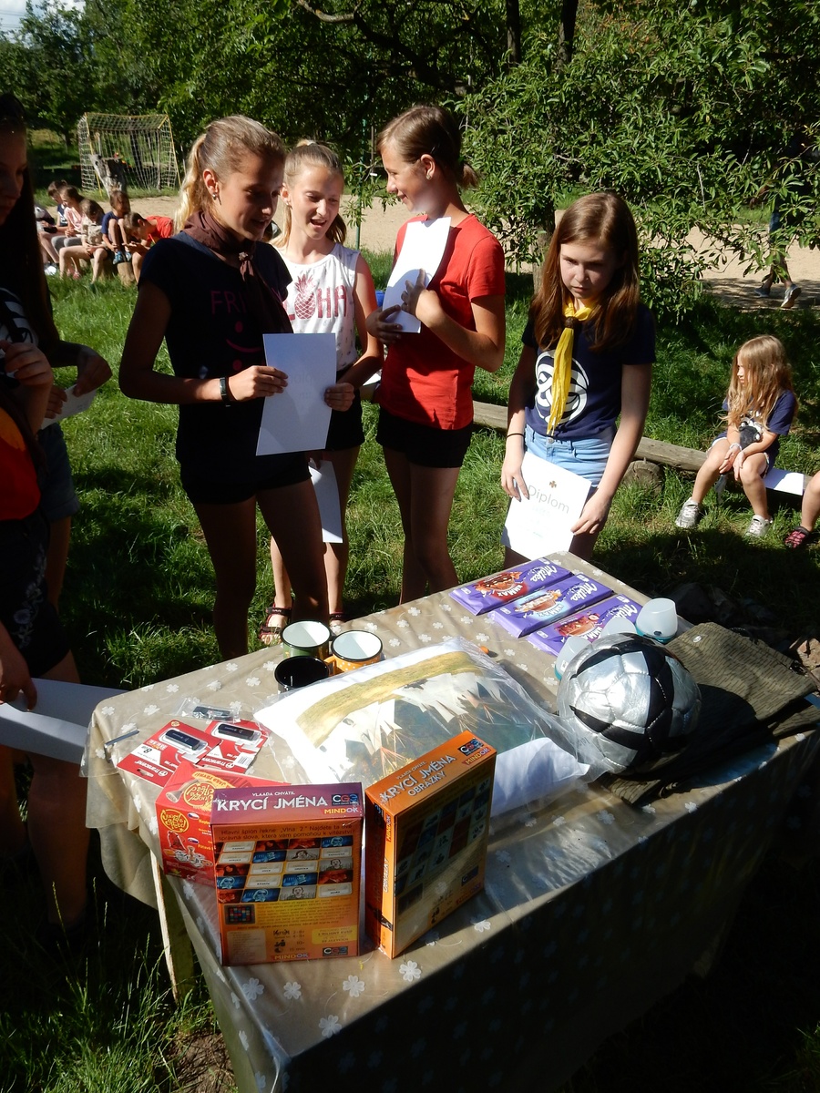 Je pátek 21.6.2019, 15:45, první letní den. Teploty atakují 30°C, svítí sluníčko a na Boudě se začínají scházet první členové oddílu. Sešlo se 48 dětí a 17 vedoucích.Po nástupu se děcka rozdělily na 2 poloviny a vysvětlily se pravidla hry Letadlo v mlze. Jde o hru, kde se v každém týmu děti rozdělí do dvojic, střelec se zavázanýma očima a navigátor. Po rozeznění píšťalky letí letadla do boje… Voda lítala vzduchem jako upřené pohledy střelců. Po dohrání se všichni sešli na špalcích a začalo vyhodnocování bodování a účasti. Jmen bylo řečeno během 10 minut opravdu hodně… Děti odcházely s odměnami jako jsou třeba plyšáci, čelovky, hrníčky, atd. Následovalo vyhodnocení otázek ze soutěže Vyznáte se?. Po vyhodnocení hned následovala tradiční bojovka s hadrovými koulemi. Stejné týmy, avšak s posilama z řad vedoucích. Bitva to byla neskutečná, koule lítaly vzduchem jedna za druhou. Zvednuté ruce a smutné odcházení na špalek… Po 3 kolech se rozhodlo vítězstvím 2:1 pro zelený. Teď už není moc o čem psát protože proběhl závěrečný nástup a šlo se domů. Tak se snad všichni zase brzo potkáme na táboře! Roxy
