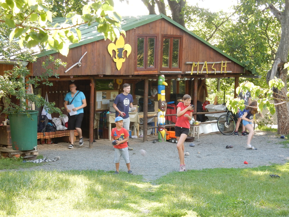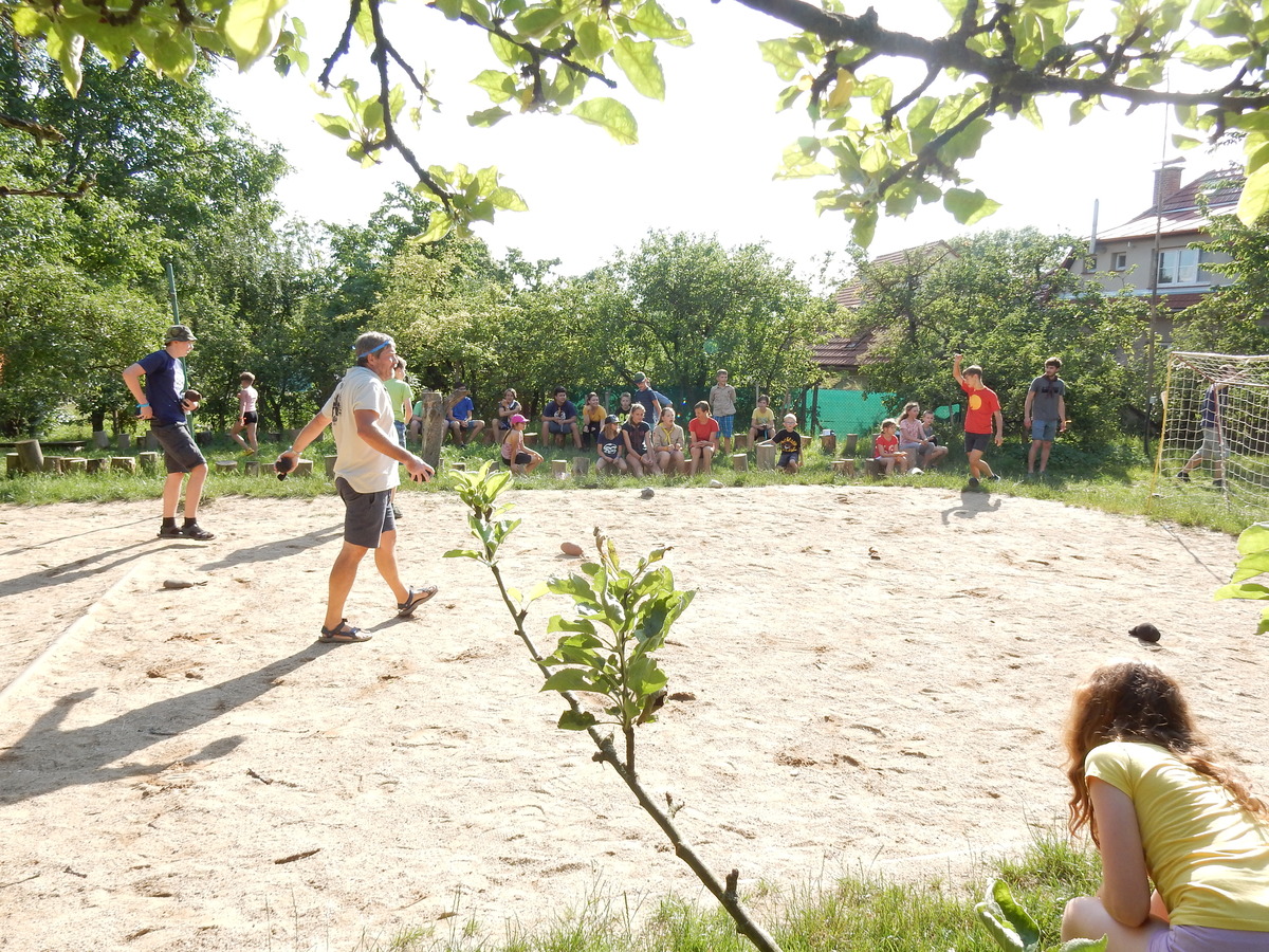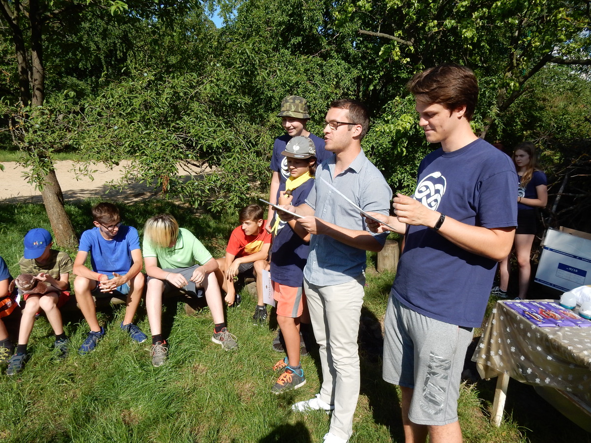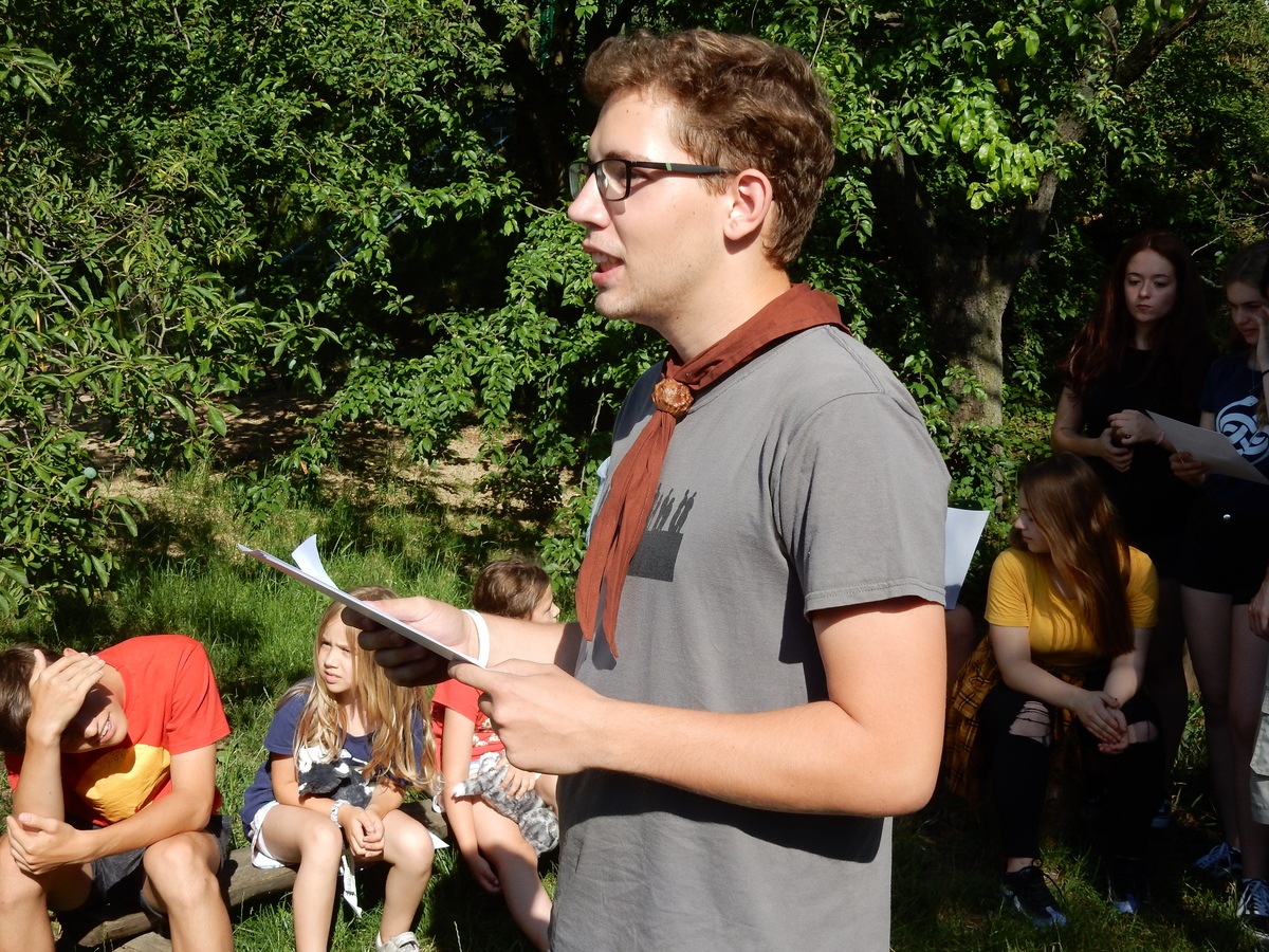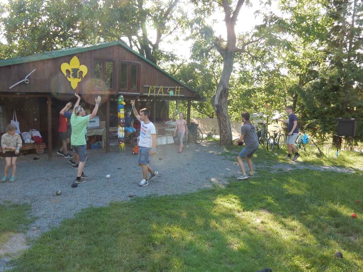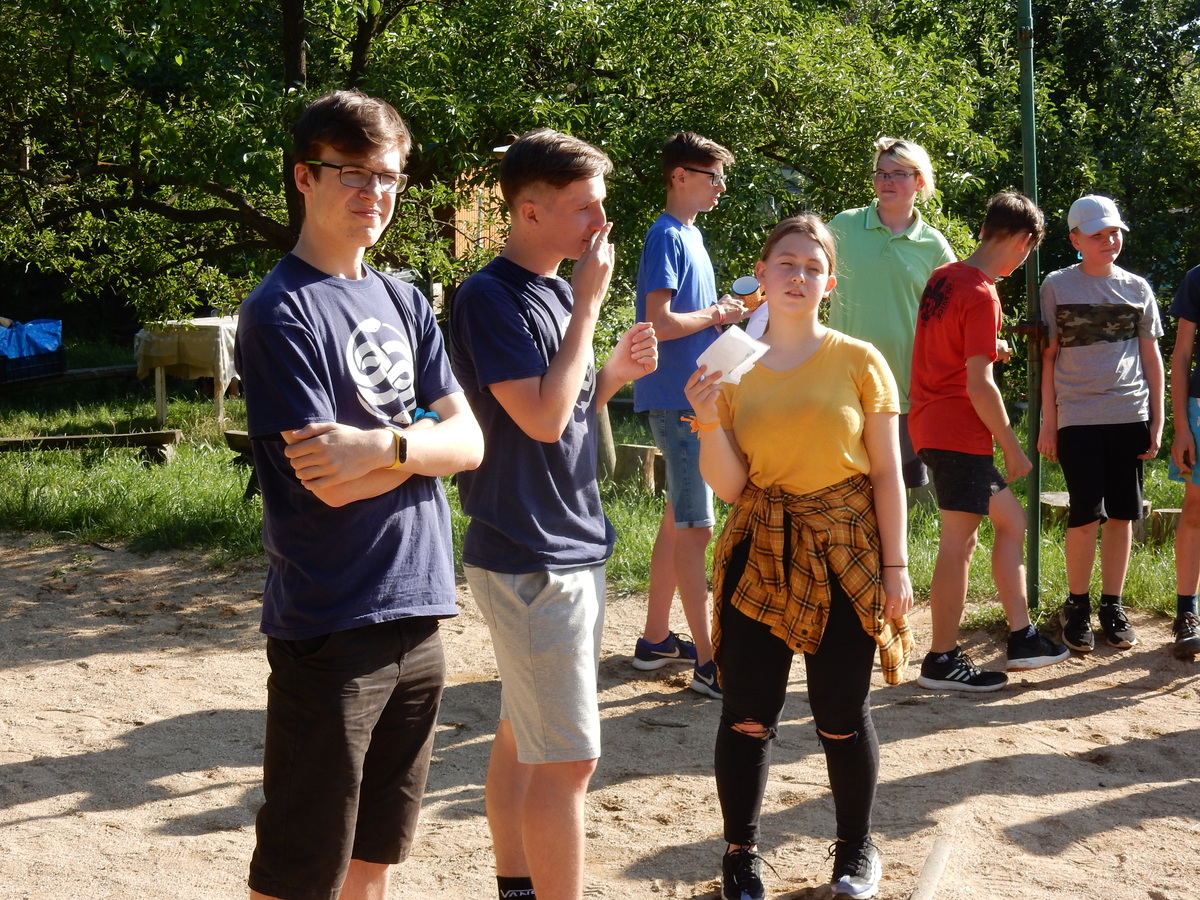 Je pátek 21.6.2019, 15:45, první letní den. Teploty atakují 30°C, svítí sluníčko a na Boudě se začínají scházet první členové oddílu. Sešlo se 48 dětí a 17 vedoucích.Po nástupu se děcka rozdělily na 2 poloviny a vysvětlily se pravidla hry Letadlo v mlze. Jde o hru, kde se v každém týmu děti rozdělí do dvojic, střelec se zavázanýma očima a navigátor. Po rozeznění píšťalky letí letadla do boje… Voda lítala vzduchem jako upřené pohledy střelců. Po dohrání se všichni sešli na špalcích a začalo vyhodnocování bodování a účasti. Jmen bylo řečeno během 10 minut opravdu hodně… Děti odcházely s odměnami jako jsou třeba plyšáci, čelovky, hrníčky, atd. Následovalo vyhodnocení otázek ze soutěže Vyznáte se?. Po vyhodnocení hned následovala tradiční bojovka s hadrovými koulemi. Stejné týmy, avšak s posilama z řad vedoucích. Bitva to byla neskutečná, koule lítaly vzduchem jedna za druhou. Zvednuté ruce a smutné odcházení na špalek… Po 3 kolech se rozhodlo vítězstvím 2:1 pro zelený. Teď už není moc o čem psát protože proběhl závěrečný nástup a šlo se domů. Tak se snad všichni zase brzo potkáme na táboře! Roxy