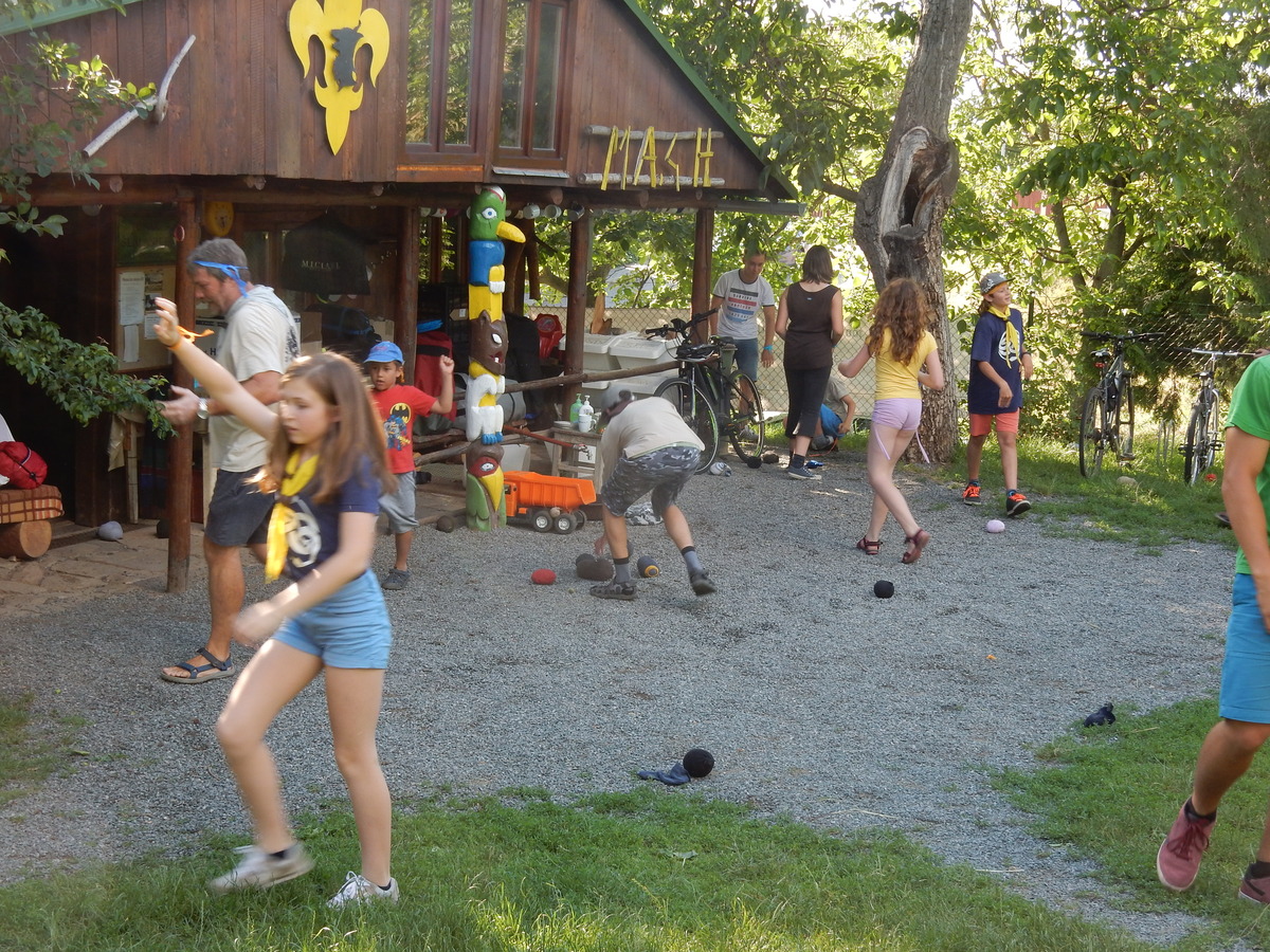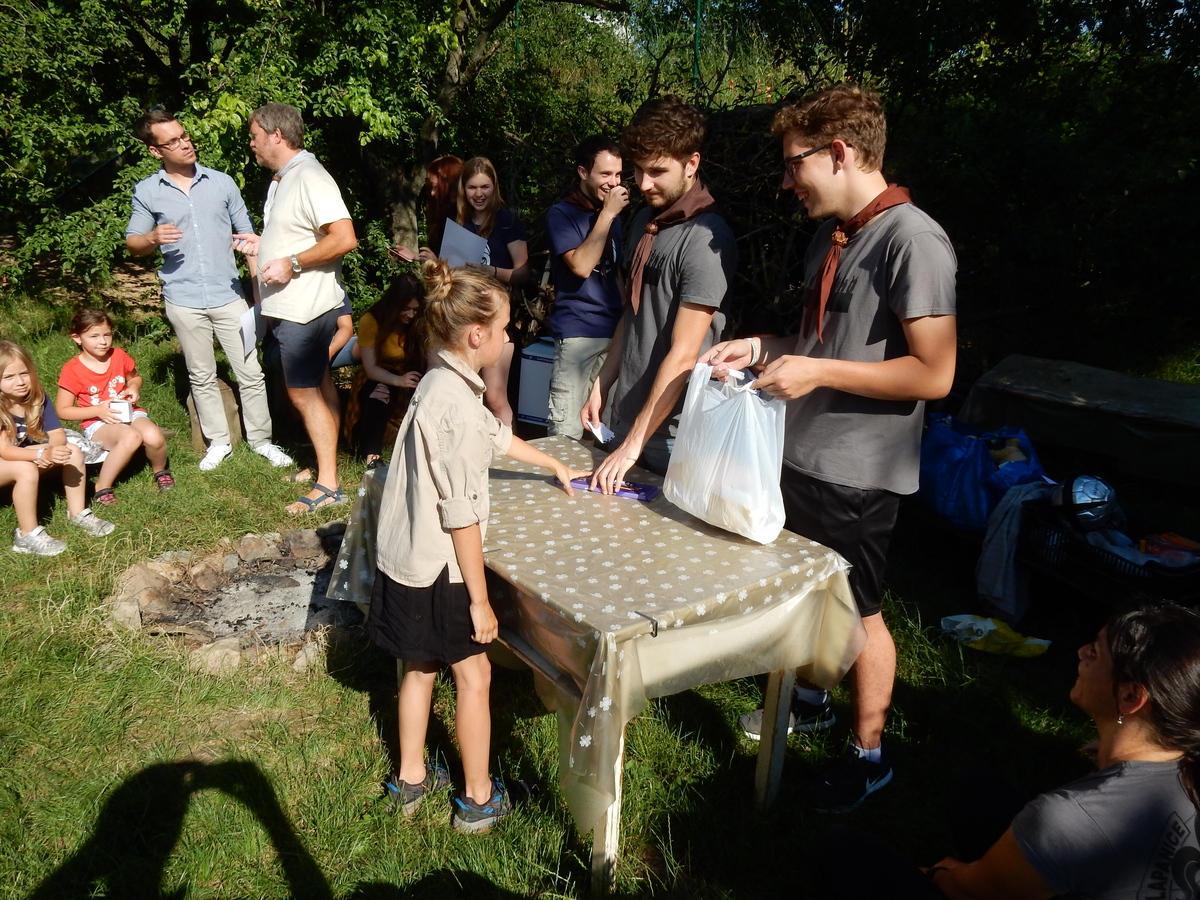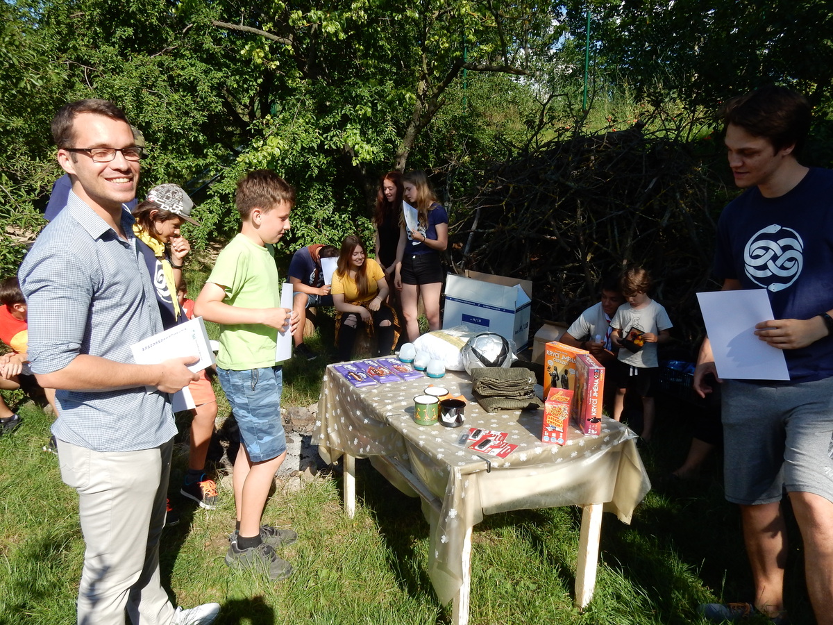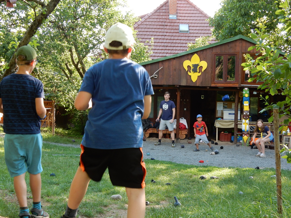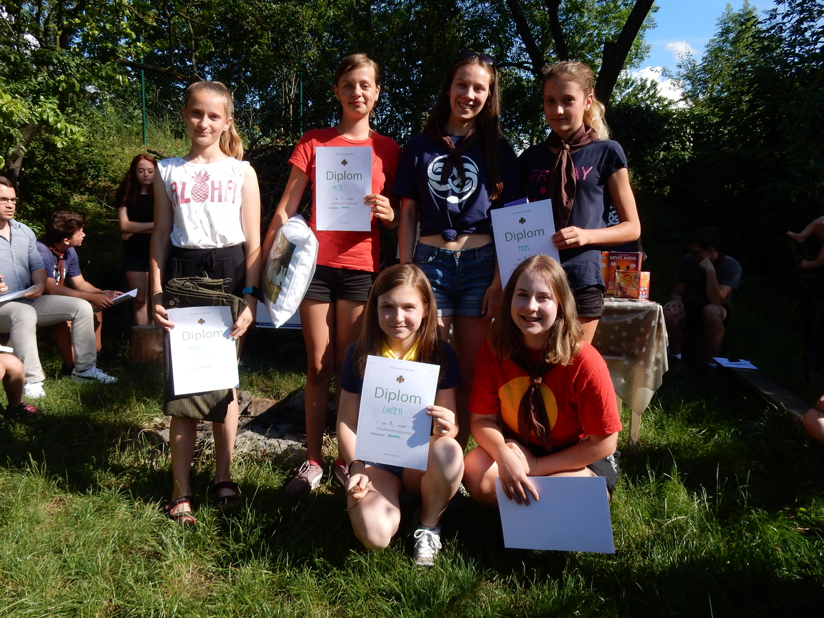 Je pátek 21.6.2019, 15:45, první letní den. Teploty atakují 30°C, svítí sluníčko a na Boudě se začínají scházet první členové oddílu. Sešlo se 48 dětí a 17 vedoucích.Po nástupu se děcka rozdělily na 2 poloviny a vysvětlily se pravidla hry Letadlo v mlze. Jde o hru, kde se v každém týmu děti rozdělí do dvojic, střelec se zavázanýma očima a navigátor. Po rozeznění píšťalky letí letadla do boje… Voda lítala vzduchem jako upřené pohledy střelců. Po dohrání se všichni sešli na špalcích a začalo vyhodnocování bodování a účasti. Jmen bylo řečeno během 10 minut opravdu hodně… Děti odcházely s odměnami jako jsou třeba plyšáci, čelovky, hrníčky, atd. Následovalo vyhodnocení otázek ze soutěže Vyznáte se?. Po vyhodnocení hned následovala tradiční bojovka s hadrovými koulemi. Stejné týmy, avšak s posilama z řad vedoucích. Bitva to byla neskutečná, koule lítaly vzduchem jedna za druhou. Zvednuté ruce a smutné odcházení na špalek… Po 3 kolech se rozhodlo vítězstvím 2:1 pro zelený. Teď už není moc o čem psát protože proběhl závěrečný nástup a šlo se domů. Tak se snad všichni zase brzo potkáme na táboře! Roxy