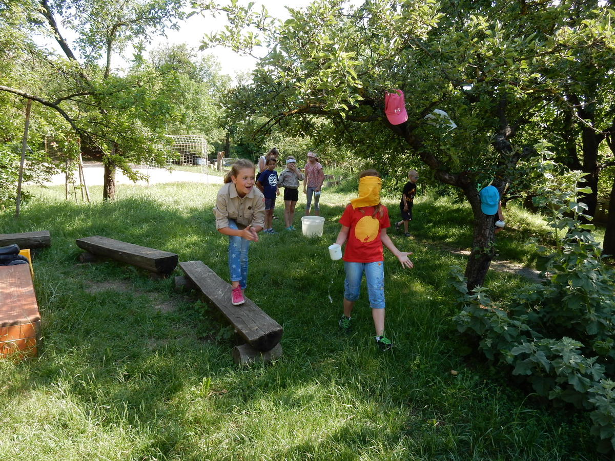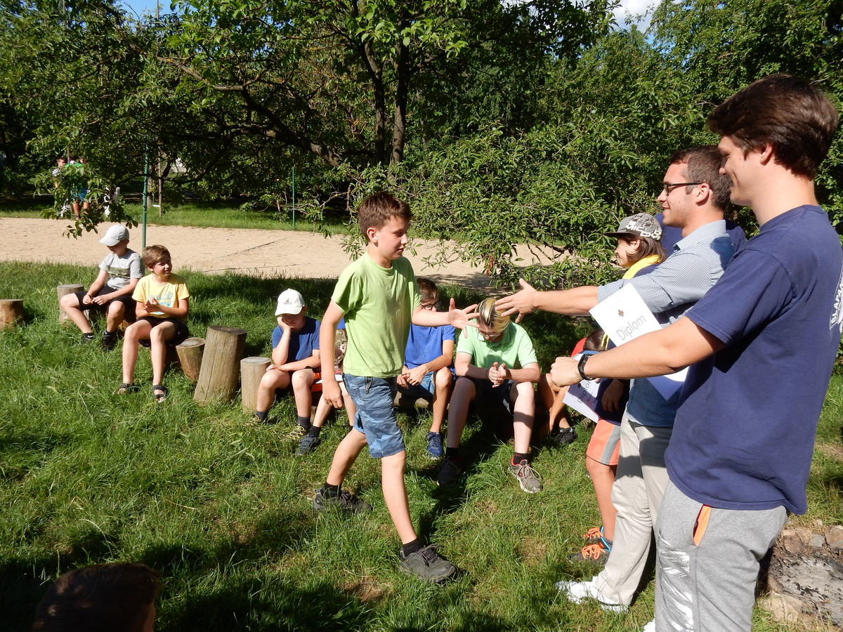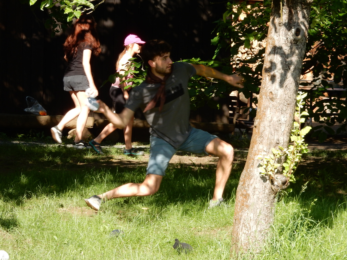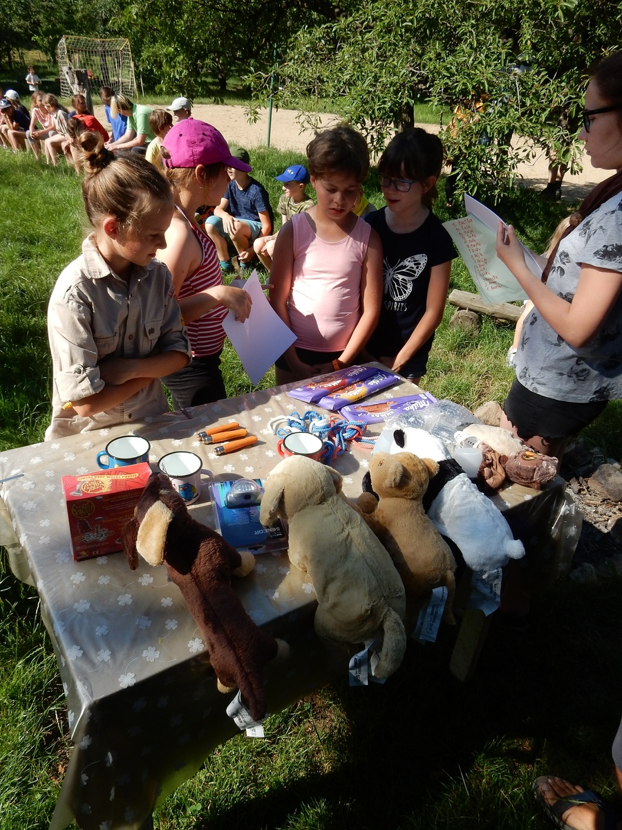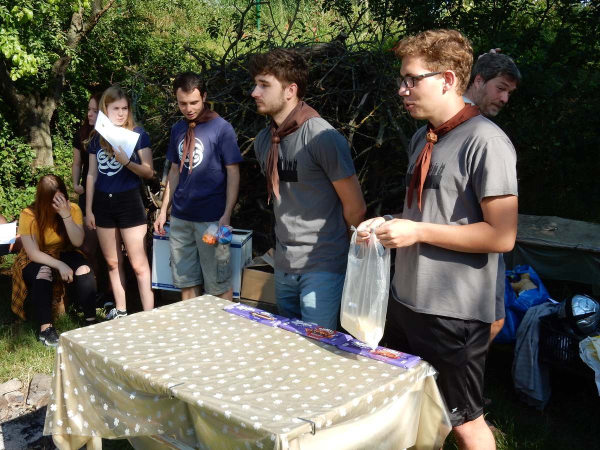 Je pátek 21.6.2019, 15:45, první letní den. Teploty atakují 30°C, svítí sluníčko a na Boudě se začínají scházet první členové oddílu. Sešlo se 48 dětí a 17 vedoucích.Po nástupu se děcka rozdělily na 2 poloviny a vysvětlily se pravidla hry Letadlo v mlze. Jde o hru, kde se v každém týmu děti rozdělí do dvojic, střelec se zavázanýma očima a navigátor. Po rozeznění píšťalky letí letadla do boje… Voda lítala vzduchem jako upřené pohledy střelců. Po dohrání se všichni sešli na špalcích a začalo vyhodnocování bodování a účasti. Jmen bylo řečeno během 10 minut opravdu hodně… Děti odcházely s odměnami jako jsou třeba plyšáci, čelovky, hrníčky, atd. Následovalo vyhodnocení otázek ze soutěže Vyznáte se?. Po vyhodnocení hned následovala tradiční bojovka s hadrovými koulemi. Stejné týmy, avšak s posilama z řad vedoucích. Bitva to byla neskutečná, koule lítaly vzduchem jedna za druhou. Zvednuté ruce a smutné odcházení na špalek… Po 3 kolech se rozhodlo vítězstvím 2:1 pro zelený. Teď už není moc o čem psát protože proběhl závěrečný nástup a šlo se domů. Tak se snad všichni zase brzo potkáme na táboře! Roxy