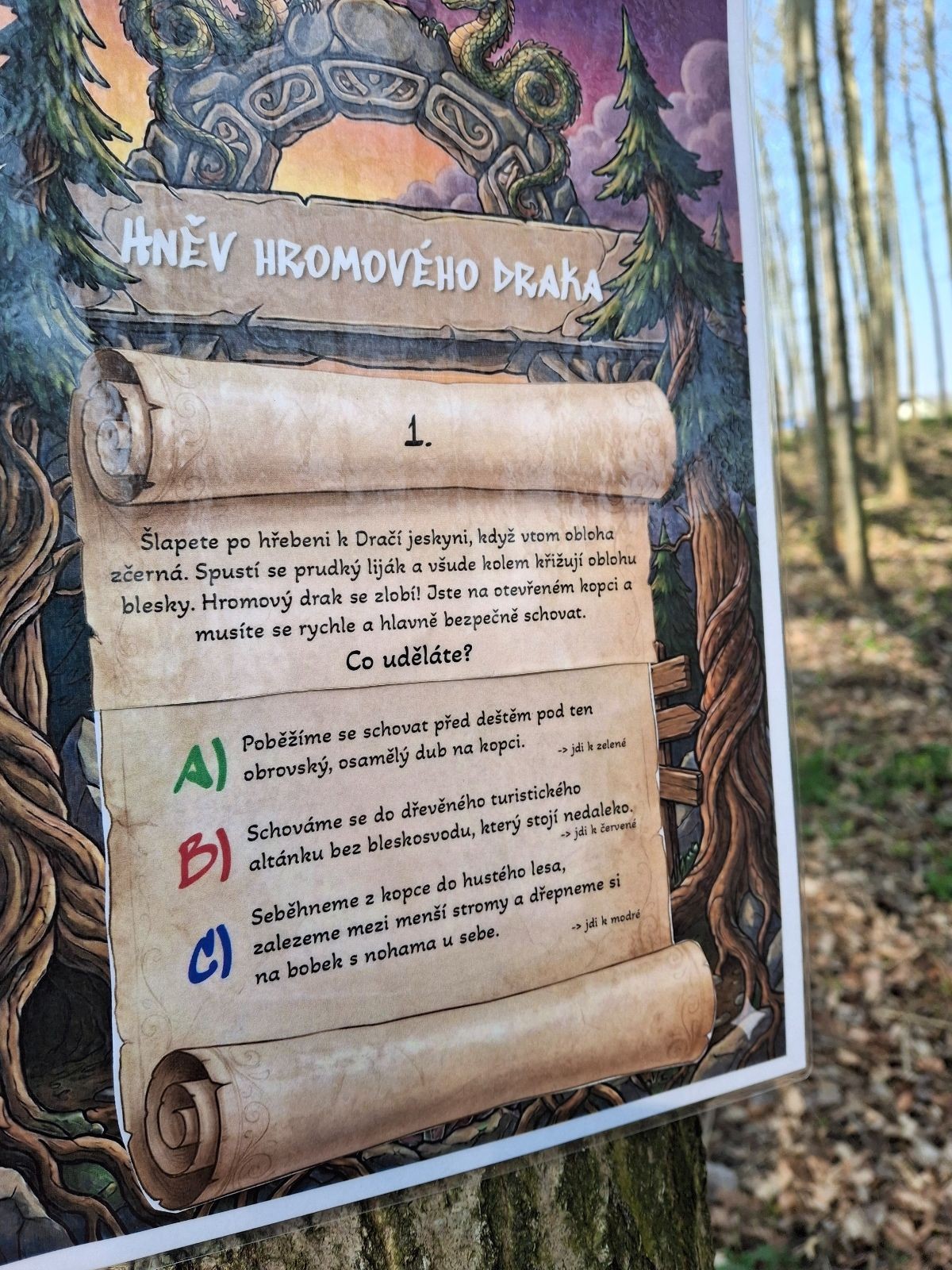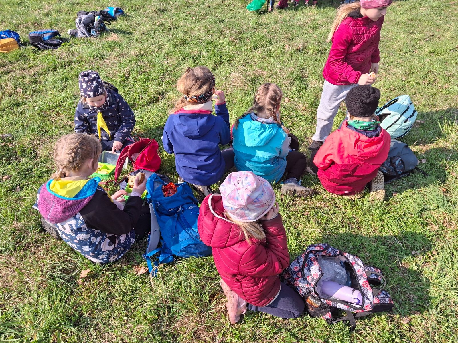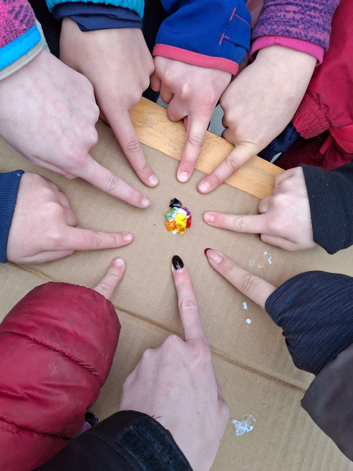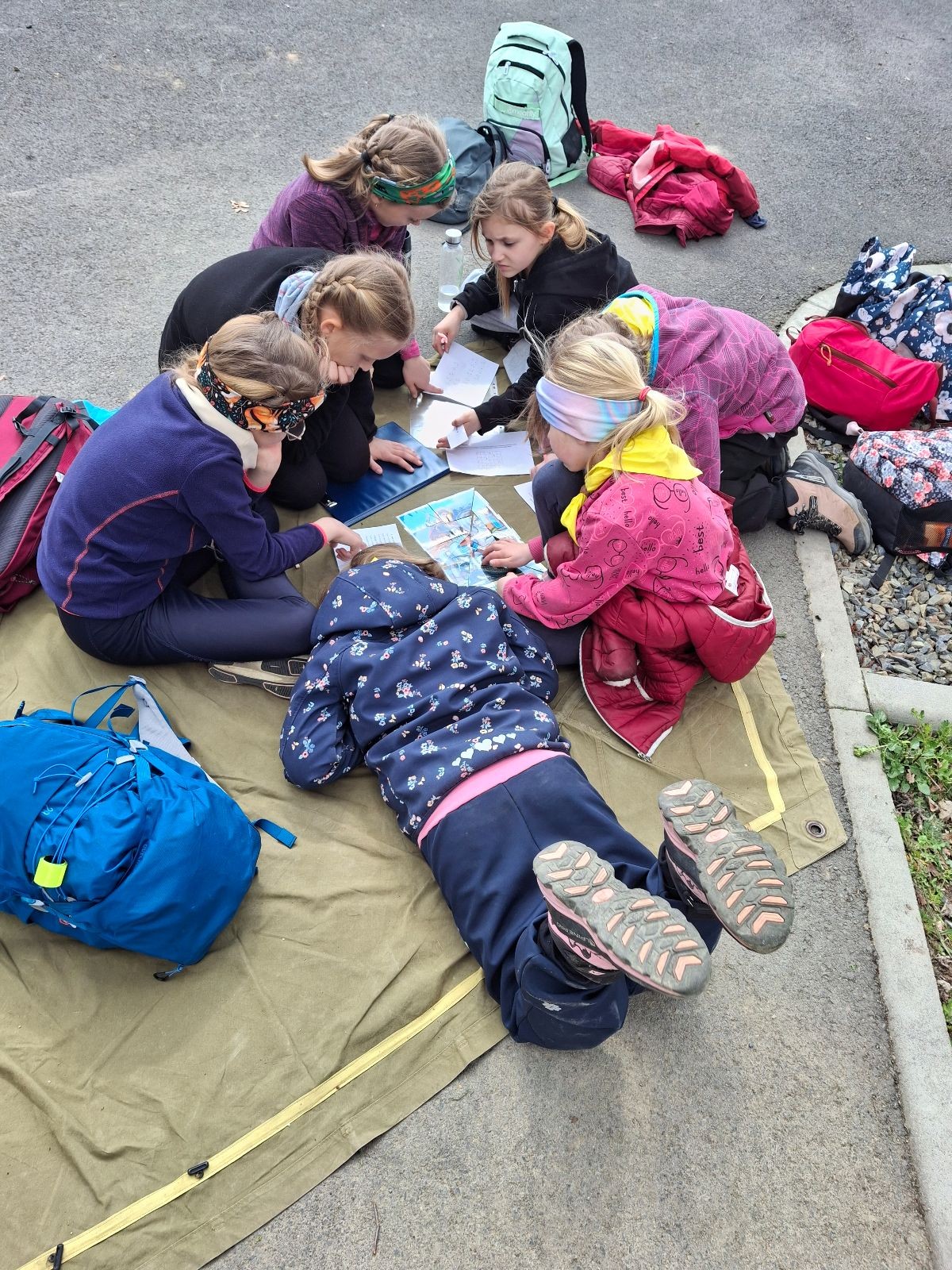 V cíli jsme se všichni potkali, nafasovali sváču a snědli i vlastní zásoby z domu a pak už se každý zabavil po svém. Než dorazily všechny týmy a byly vyhodnoceny výsledky jsme si mohli malovat, hrát deskovky, vyrábět placky nebo si prostě běhat po lese. Uteklo to jako voda a byl slavnostní nástup s vyhodnocením výsledků. Moc jsme si to užili, vše bylo parádně zorganizované a jde vidět, že za takovou akcí stojí spousta dřiny.