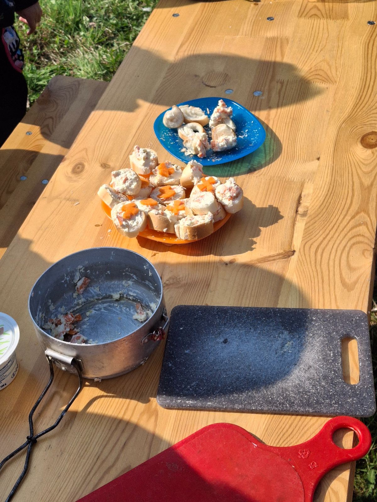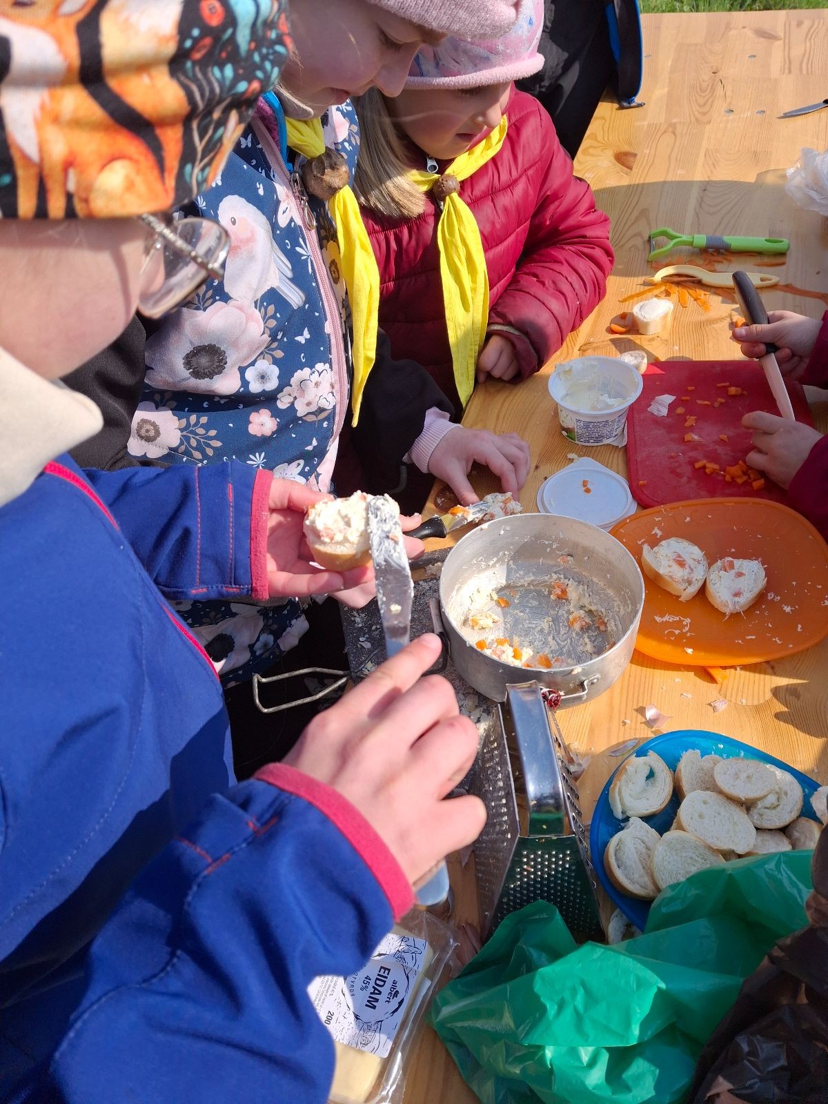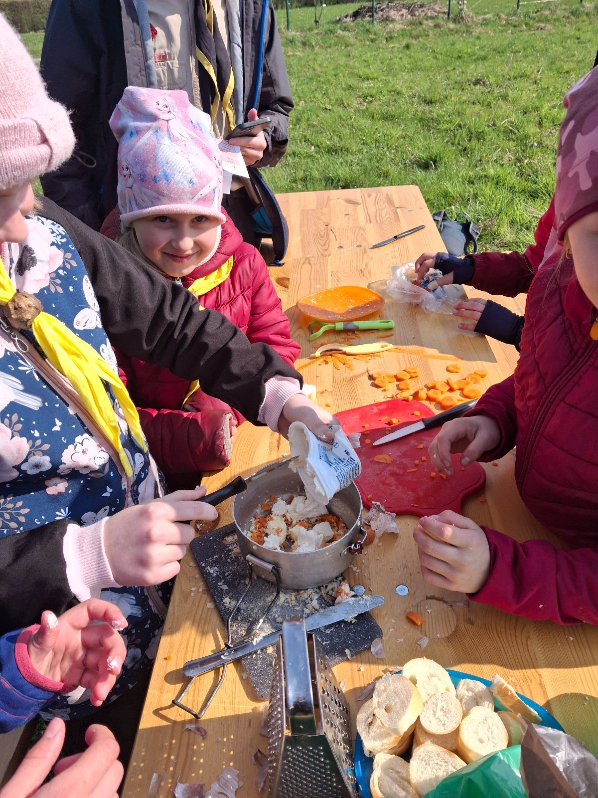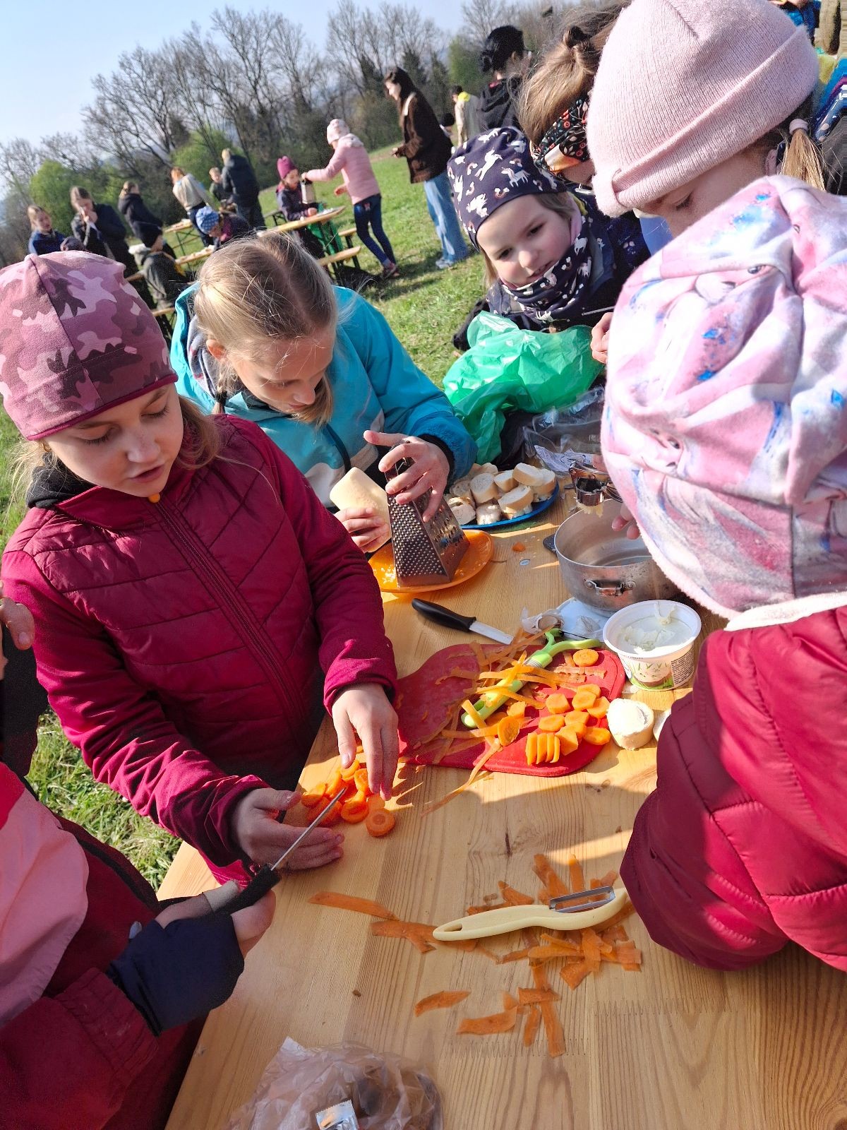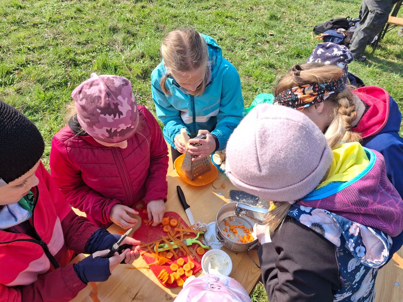 Pandy vyrážely hned mezi prvními týmy. Mapa a růžové fáborky nás postupně naváděly po stanovištích, které testovaly jak naše znalosti, tak i praktické dovednosti. Na některé úkoly jsme se s holkama připravovali, ale ani těmi ostatními se Pandičky nenechaly vyvést z míry. Stačí trocha improvizace a týmového ducha. Navíc, kdo řekl, že mrkev v mrkvové pomazánce musí být nastrouhaná a nemůže být nakrájená na kostičky? A pravidlo 3 sekund v hodnocení o dodržování hygieny při vaření z nějakého důvodu nebrali v potaz. Nebyla by snad škoda vyhodit česnek jen proto, že spadl na zem? Ale například poznávání rostlin a zvířat nebo řešení problémových situací zvládaly holky s přehledem. A hlavně v průběhu celého závodu panovala veselá nálada.