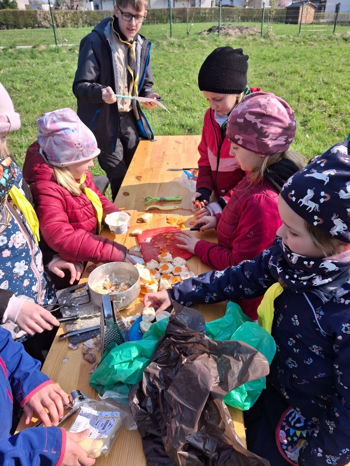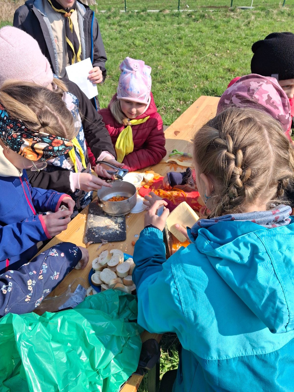 A u Sokolího družstva tomu nebylo jinak. Protože startovali až později, stihli si ještě před začátkem zalézt na místní lezecké stěně. Na závod vyrazili jako jedni z mála i v tematických kostýmech draků, které si vyrobili. Po absolvování stanoviště první pomoci a zhodnocení výkonu kluků bychom úplně nedoporučovali zranit se v jejich blízkosti. Ale jestli se někdy ztratíte ve spleti autobusů, určitě se obraťte právě na Sokoly, neboť úkoly s jízdními řády zvládli bravurně s plným počtem bodů! Vaření prý přenechají raději jiným, ale možná jim jen chutná taková jednohubka vyválená v trávě se špetkou křupavé hlíny… však to znáte, proti gustu…