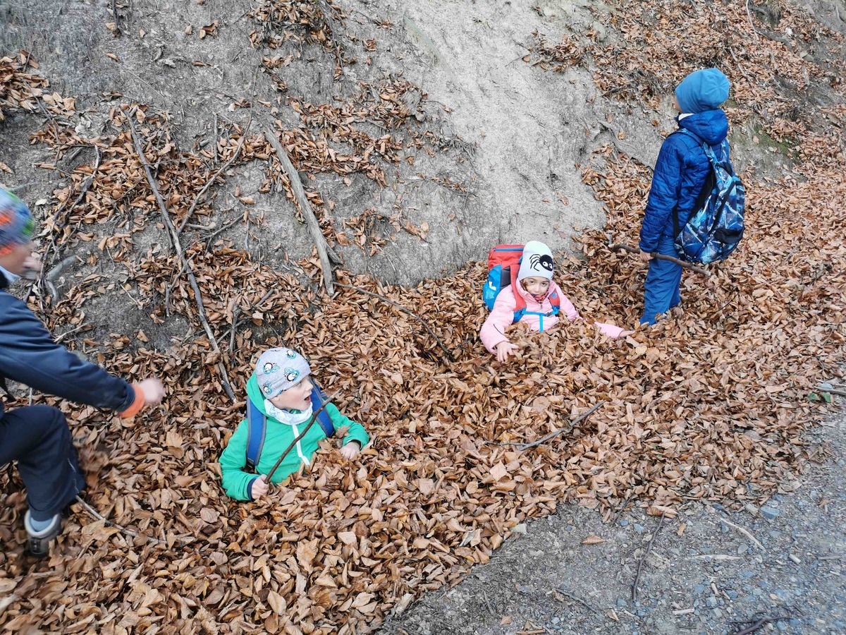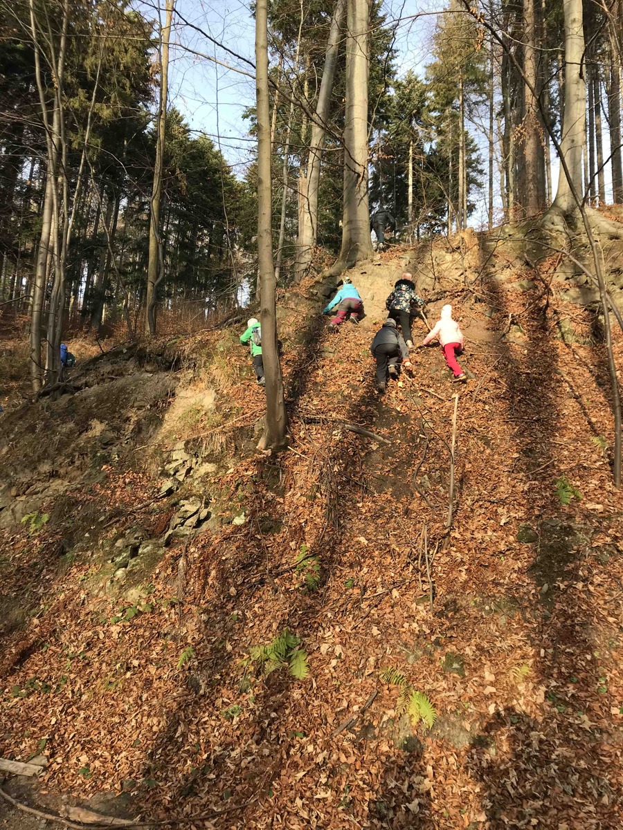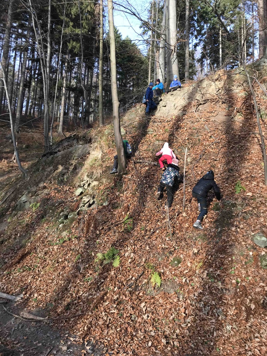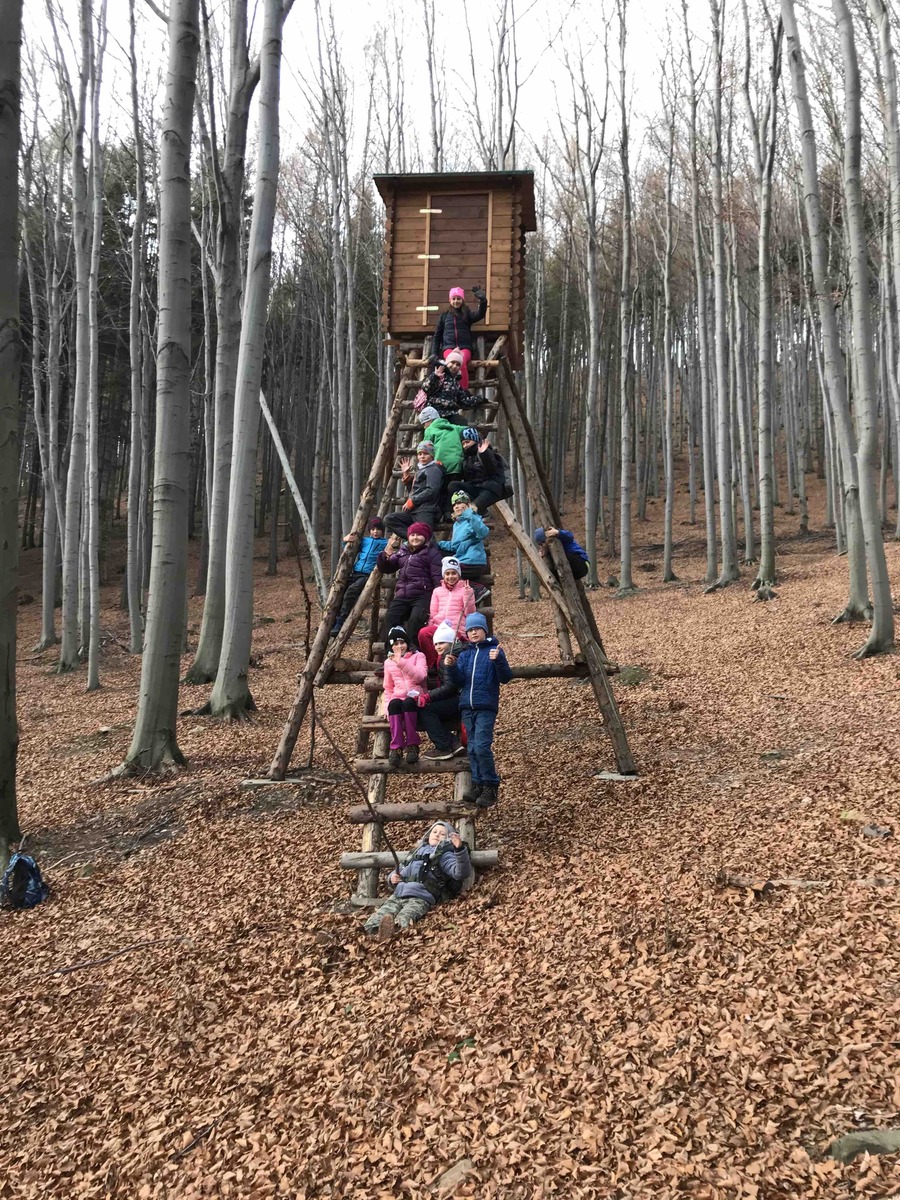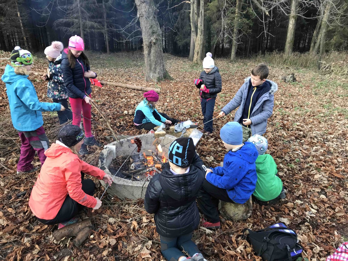 Dnes se Lišky vydaly na Hůrky hledat tajemné místo, které měly zaznačené na mapě. V 9 jsme se sešli u Myslivecké chaty. Děti dostaly úkoly, co mají cestou najít, a mapu. Trošku jsme si ukázali orientaci s mapou a pak už se děti ujaly vedení a nejkratší cestou nás tam zavedly. Na místě nás čekal pan lesník, který pro nás měl připraveno napínavé vyprávění o místní zvěři. Mohli jsme si potěžkat, co na hlavě nosí jelen, daněk i muflon nebo osahat zuby divočáka. Potom děti měly za úkol najít v lese odložená paroží a posléze vystopovat lišku a 3 hody se ji snažit zasáhnout. Pak jsme si rozdělali oheň a opekli špekáčky, ať se posilníme na cestu zpět. Ta byla ve znamení dalších potop a bomb, ale i strefovaček a orientace s mapou. Mimo jiné jsme posbírali i několik rozbitých lahví, které jak jsme se dozvěděli, pro zvířata v lese představují smrtelné nebezpečí, když na ni šlápnou a poraní si nohu.