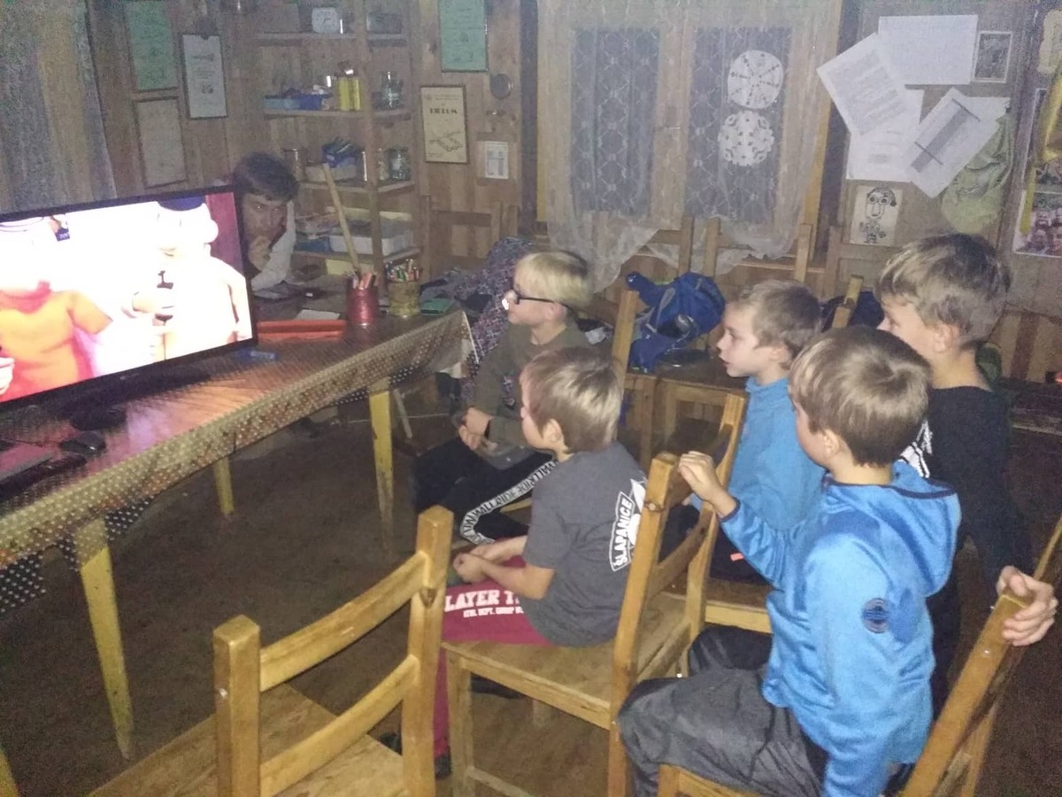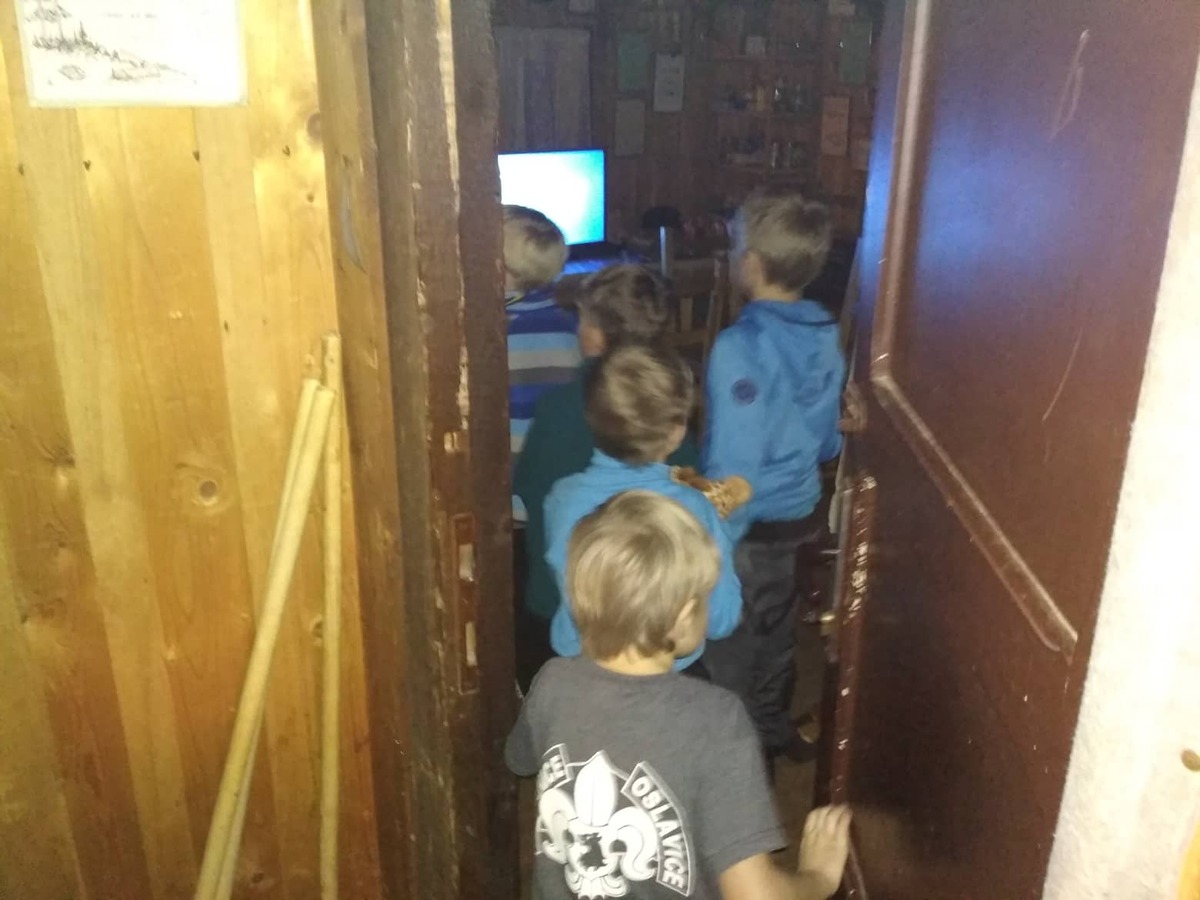 Jelikož promítačku měli na svém přespání ve Trojce Tygři, půjčil nám Kanec televizi, která již zmíněnou promítačku víc než dobře nahradila (Děkujeme!). Potom, co nám dorazila večeře, jsme zhasli, pustili si Ocelovou pěst a dojem opravdového kina doplňoval i popcorn, který donesl Honza (Taky děkujeme!). Po skončení filmu, jsme si už jen vyčistili zuby a šup do spacáků. Celý večer jsme topili, takže žádný účastník výpravy nám naštěstí nezmrzl.