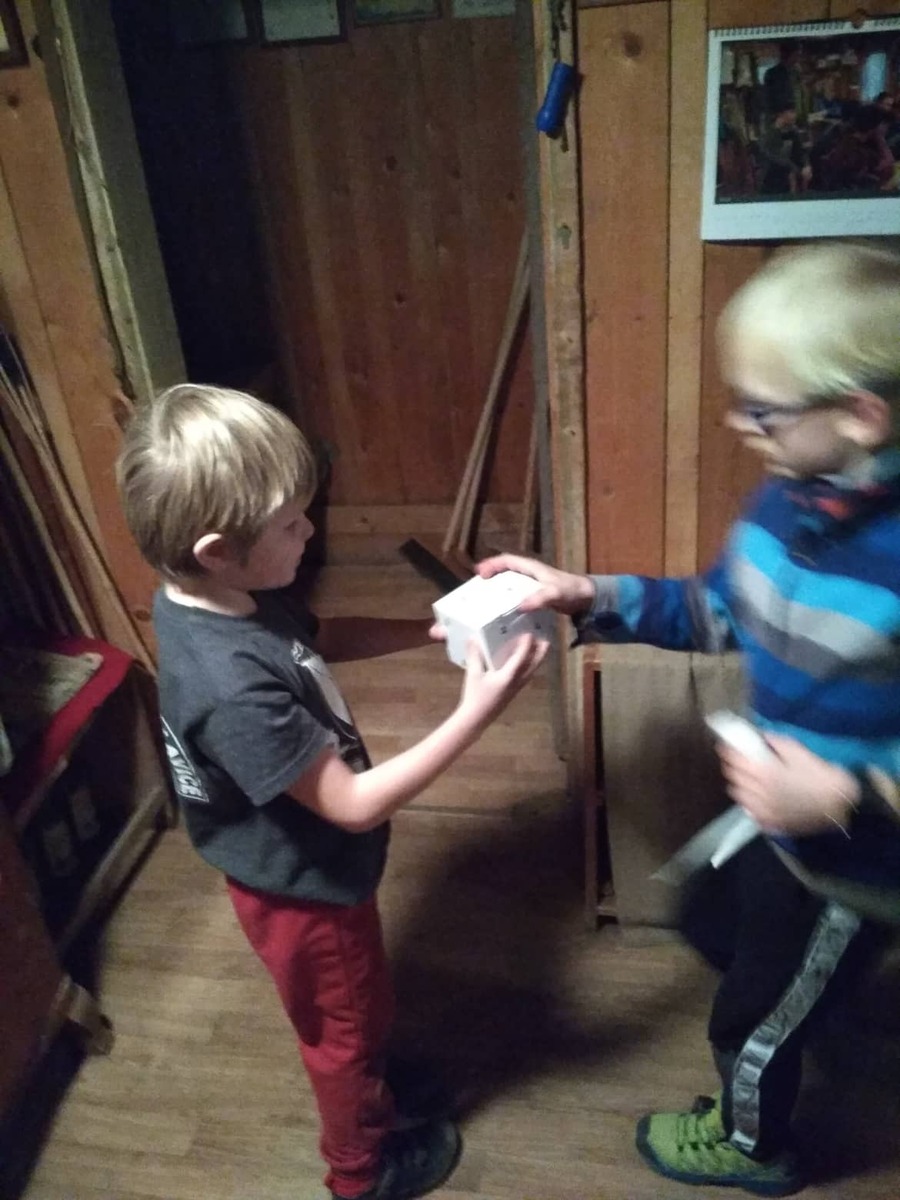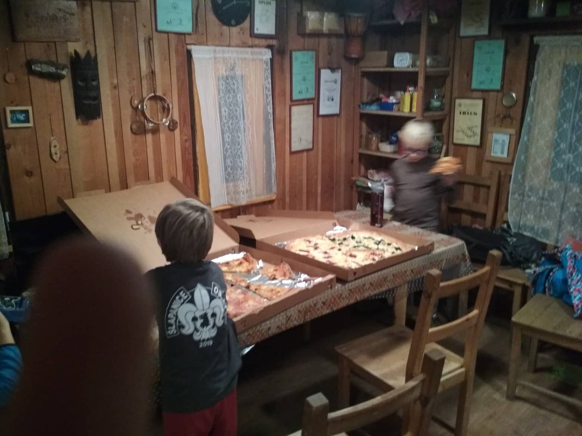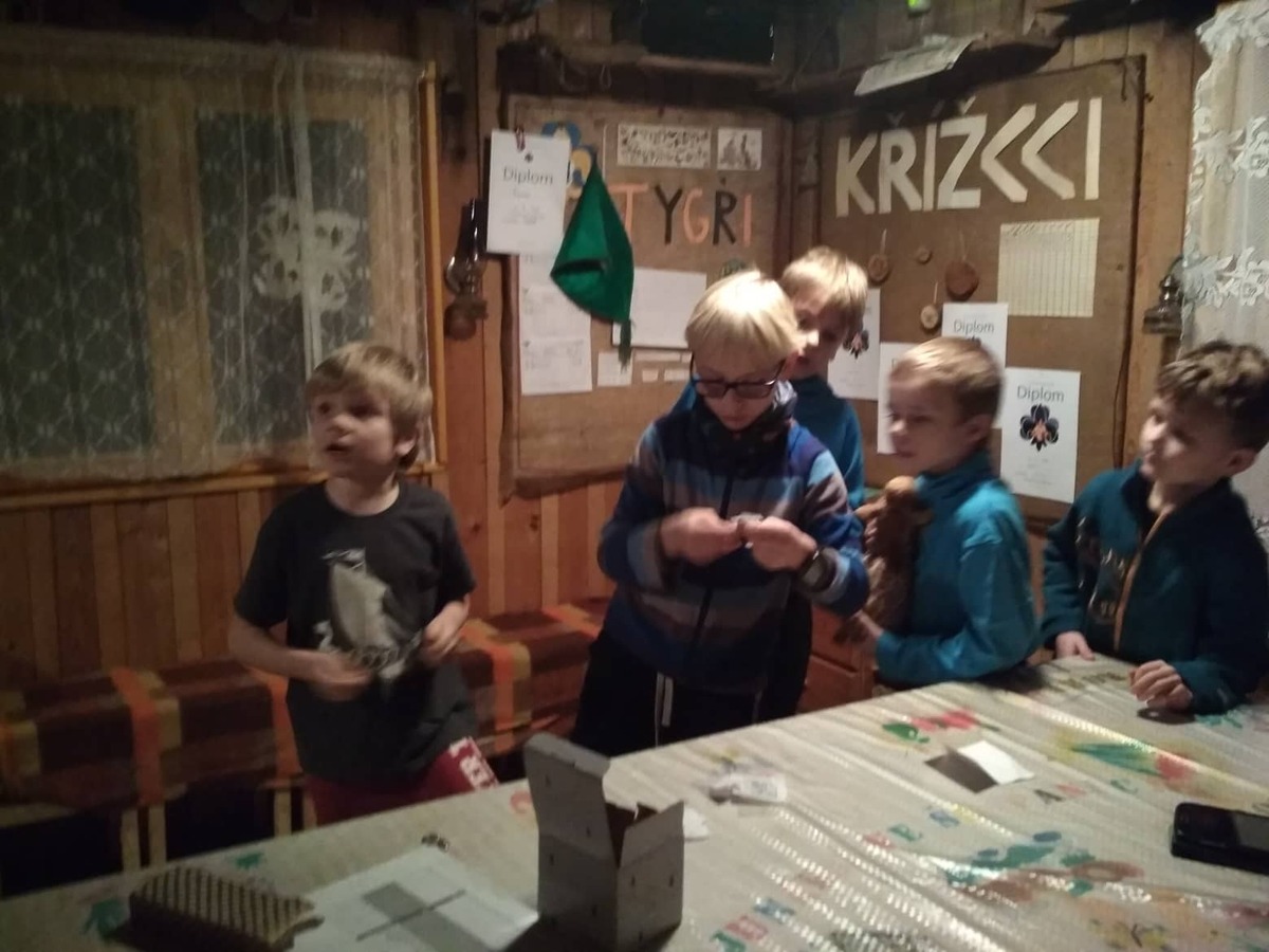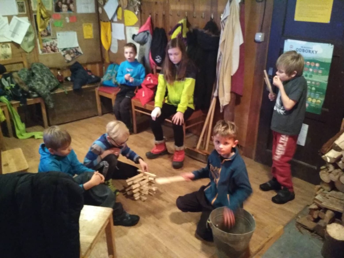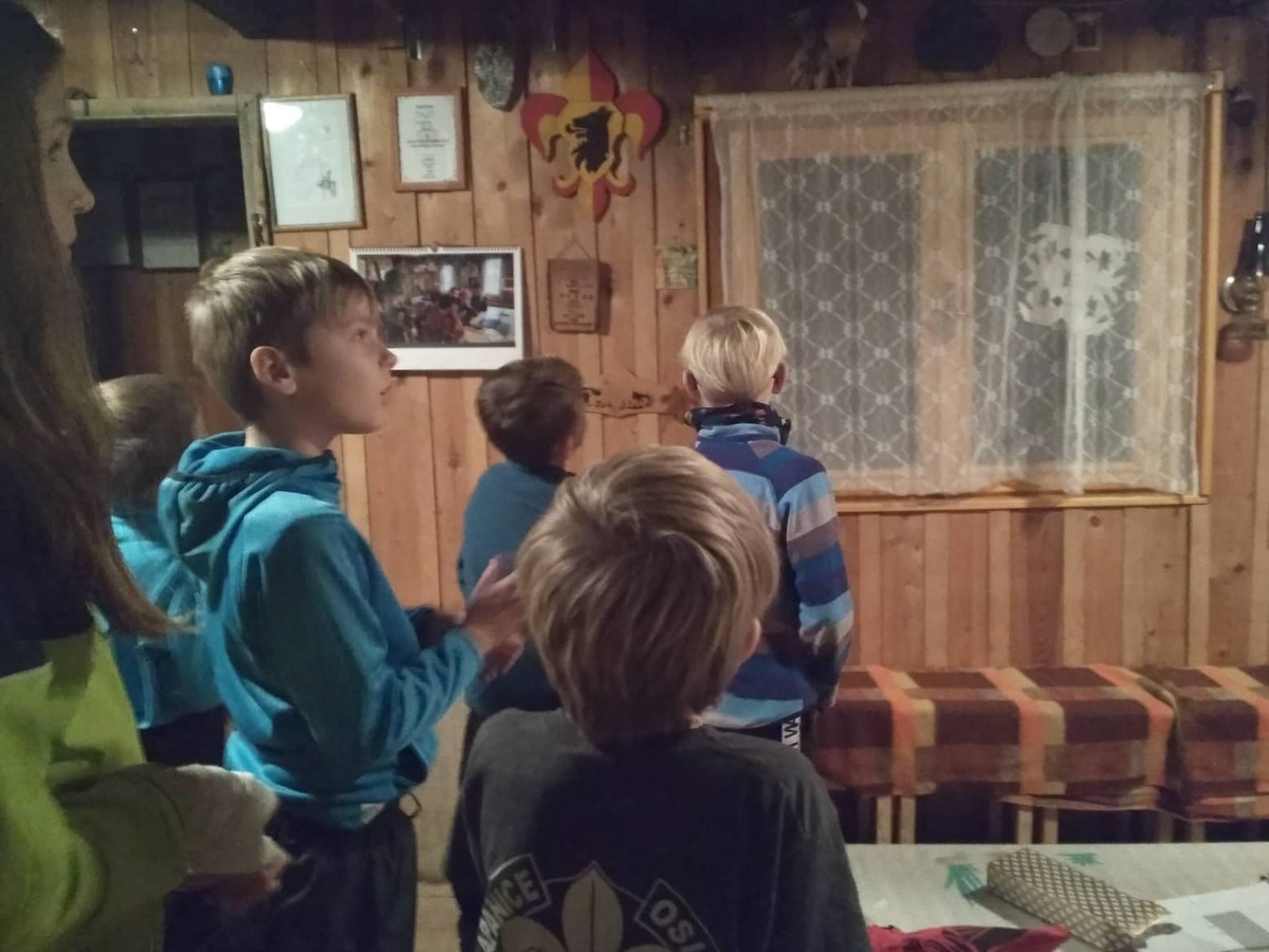 Na Boudě jsme se sešli 18. 1. 2020 kolem páté hodiny odpoledne. Kromě nás vedoucích a pěti žraloků – Danyho, Matyho, Davea, Honzy M. a Pepy – se k nám přidala i Lvíče z Veverek (sestra Honzy). Zahráli jsme si pár her na rozehřátí a zvládli jsme i jedno kolo městečka Palerma. Potom jsme se přesunuli do Staré Boudy, kde si pro nás duch válečného zběha Hanse Hagena připravil únikovou hru, kdy kluci za pomoci různých indicií schovaných po Boudě museli najít klíč ode dveří a dostat se ven. To samozřejmě zvládli úplně s přehledem. Potom, aby nám rychleji ubíhalo čekání na objednanou pizzu, jsme si venku zahráli dvě kola Haagena (schovka ve tmě) a potom si pustili pár dílů Pata a Mata.