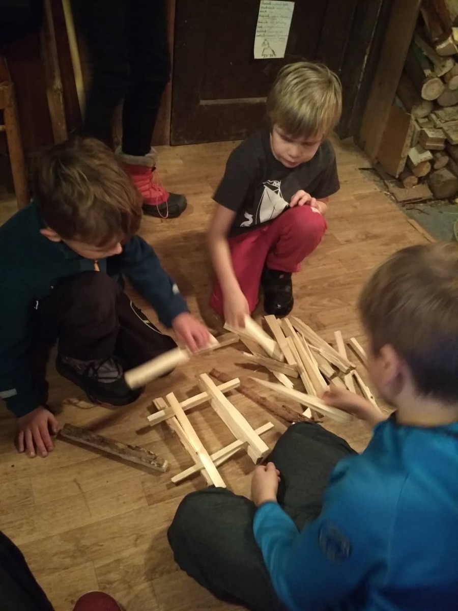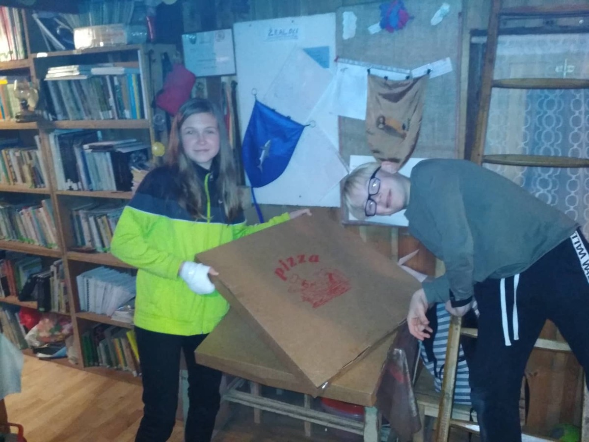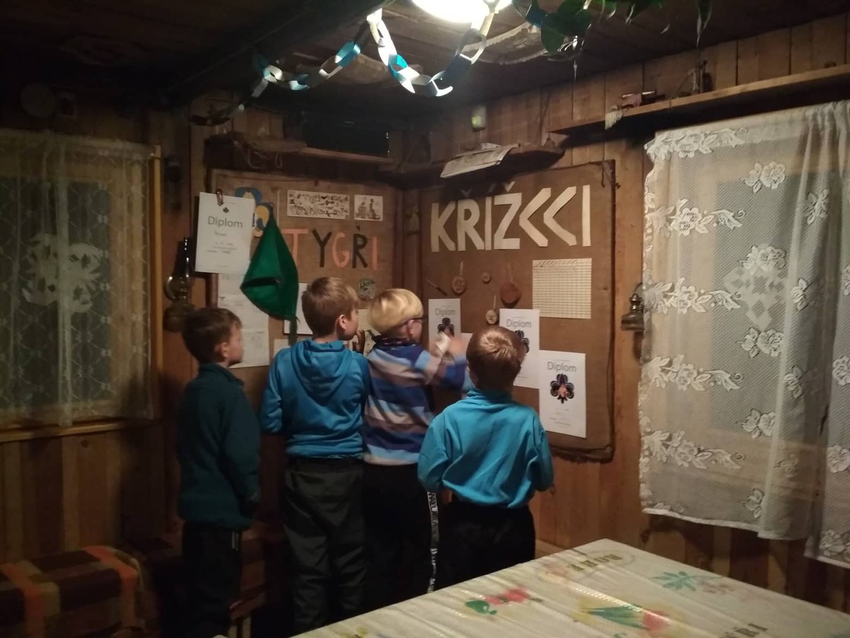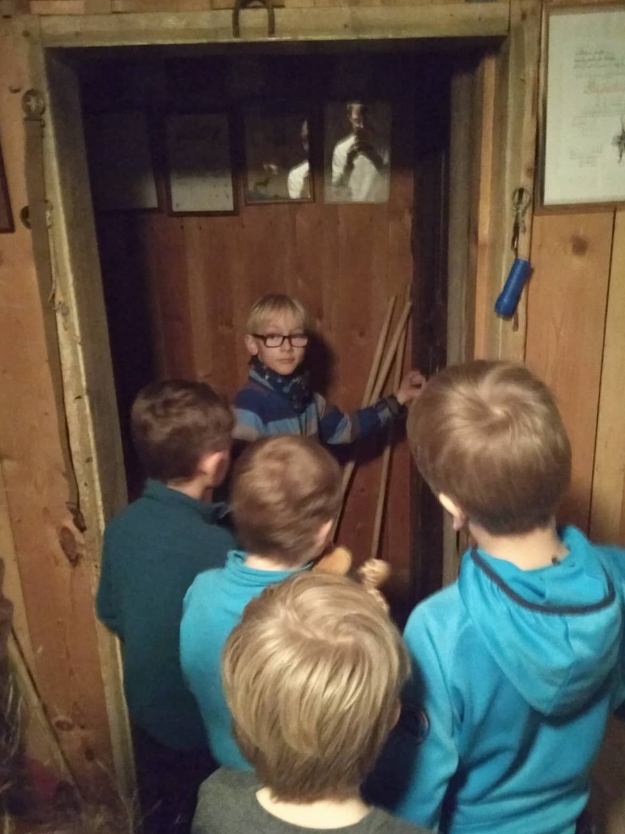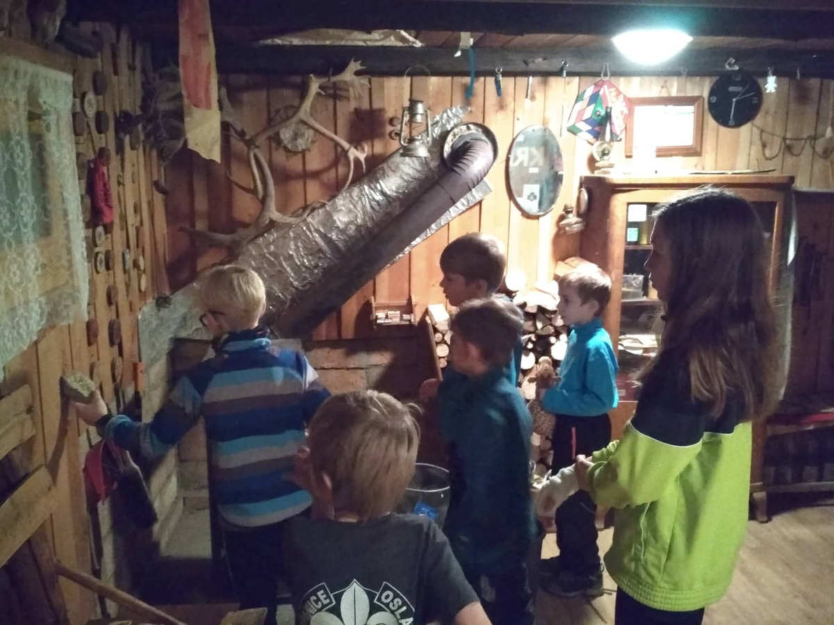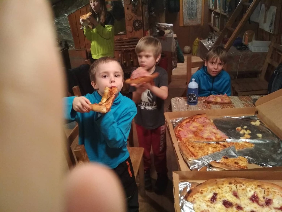 Na Boudě jsme se sešli 18. 1. 2020 kolem páté hodiny odpoledne. Kromě nás vedoucích a pěti žraloků – Danyho, Matyho, Davea, Honzy M. a Pepy – se k nám přidala i Lvíče z Veverek (sestra Honzy). Zahráli jsme si pár her na rozehřátí a zvládli jsme i jedno kolo městečka Palerma. Potom jsme se přesunuli do Staré Boudy, kde si pro nás duch válečného zběha Hanse Hagena připravil únikovou hru, kdy kluci za pomoci různých indicií schovaných po Boudě museli najít klíč ode dveří a dostat se ven. To samozřejmě zvládli úplně s přehledem. Potom, aby nám rychleji ubíhalo čekání na objednanou pizzu, jsme si venku zahráli dvě kola Haagena (schovka ve tmě) a potom si pustili pár dílů Pata a Mata.